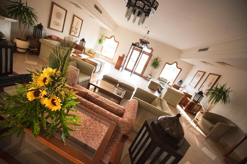 In der harmonischen Empfangshalle befindet sich die Rezeption. Eine gemütliche Bar ist innerhalb des Familienanbaus. Alle anderen All-inclusive Einrichtungen des „Grand Waterworld Makadi“ Hotels können mitbenutzt werden. In der weitläufigen Anlage des „Grand Waterworld Makadi“ befindet sich die exklusive Poollandschaft mit separatem Kinderbecken und dem Aquapark. Am Pool und Strand sind Liegen, Auflagen und Sonnenschirme inklusive. Strandtücher finden Sie in Ihrer persönlichen Badetasche auf dem Zimmer. Der Wäschereiservice kann gegen Aufpreis genutzt werden. Begrenztes WIFI in der Lobby ist kostenlos nutzbar; High Speed WIFI ist gegen Gebühr.