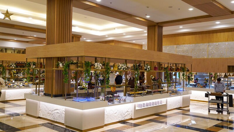 Ausstattung: Weitläufige Hotelanlage mit Swimmingpools, Liegen, Schirme, Badetücher. Empfangshalle, Rezeption, WLAN, Buffetrestaurant, 5 À-la-carte-Restaurants, 6 Bars. Landeskat.: 5 Sterne, 457 Zimmer.