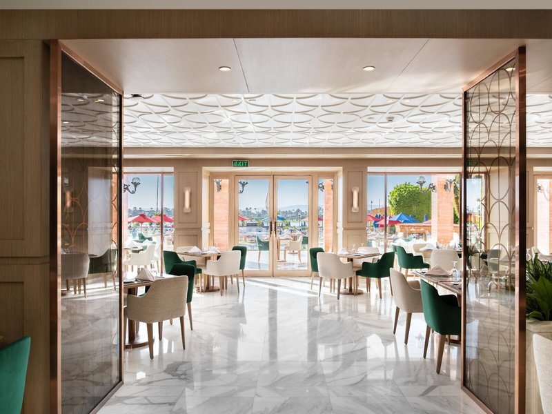 - Hauptrestaurant „Serapis“: ab 5 Jahre, Küche: international, Grillgerichte, Diätküche: gegen Gebühr, Anfrage notwendig, saisonale Gerichte: gegen Gebühr, Anfrage notwendig, vegetarische Gerichte: gegen Gebühr, Anfrage notwendig, Buffet, Anfrage & Reservierung nicht notwendig, gegen Gebühr, täglich 06:00 Uhr - 10:30 Uhr, klimatisierbar, mit Terrasse, am Pool, Kinderhochstuhl