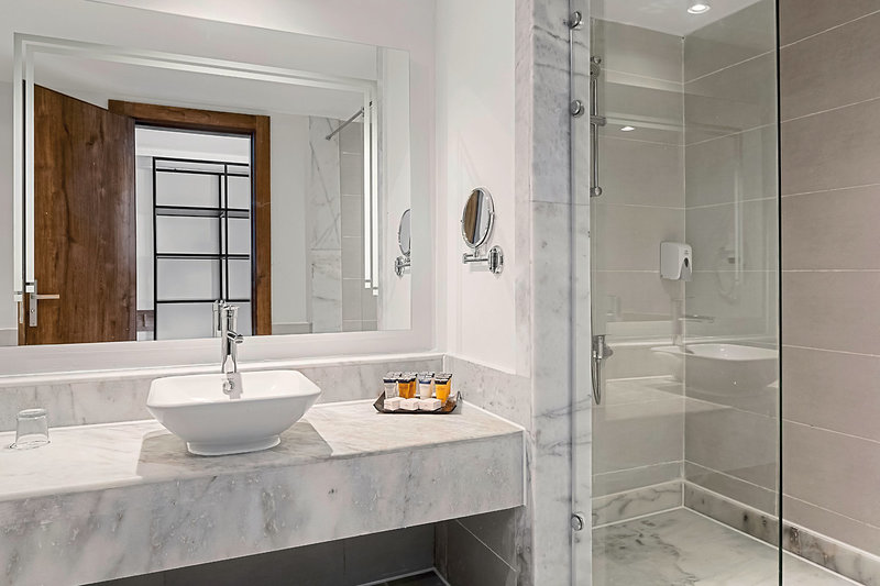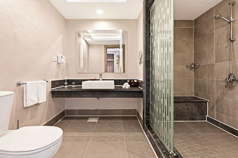 - 46-50 qm, Doppel, Economy, Doppelbetten (1 Kingsize oder 1 Twin), Dusche, Haartrockner, Kosmetikspiegel, Fliesen, Klimaanlage, Minibar, Wasser, Safe, TV, Balkon oder Terrasse (möbliert)