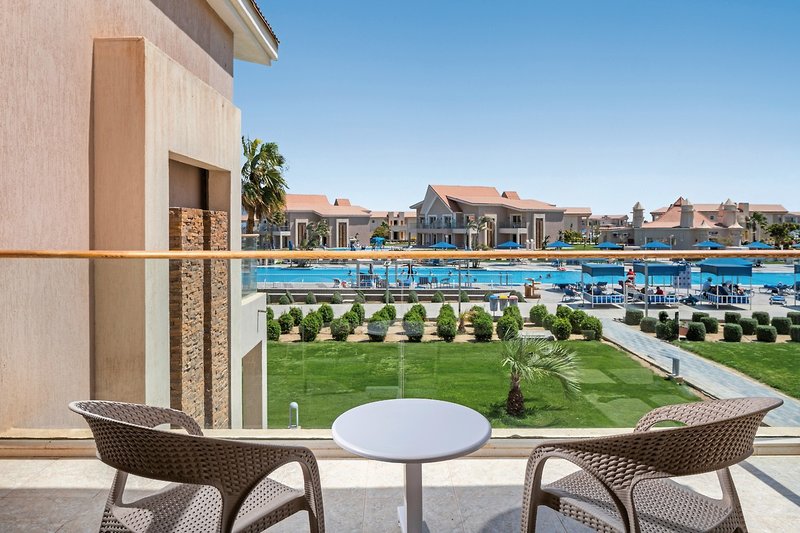 - 61-70 qm, Familien, Poolblick, optisch getrennter Wohn-/Schlafraum (mit Schiebetür), 2 Doppelbetten, Dusche, Haartrockner, Kosmetikspiegel, Fliesen, Klimaanlage, Minibar, Wasser, Safe, TV, Balkon oder Terrasse (möbliert)