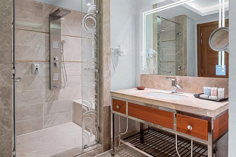 - 51-60 m², Junior Suite, Výhľad na more (čiastočný), samostatná obývacia izba, sprchovací kút, sušič vlasov, kozmetické zrkadlo, dlažba, klimatizácia, minibar, voda, trezor, TV, balkón alebo terasa (zariadená)