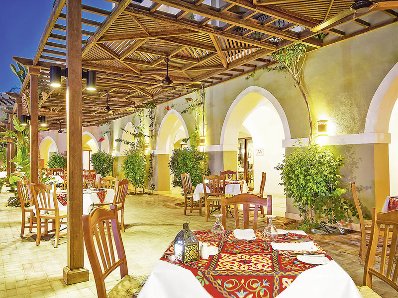 Ausstattung: Hotelanlage im orientalischen Stil. 2 Swimmingpools (beheizbar), Wasserrutsche, Sonnenterrasse, Pool-/Strandbar. Liegen, Schirme, Badetücher am Pool, Strand. Empfangshalle, Rezeption, Basis-WLAN (öffentl. Bereiche), Lobbybar, Hauptrestaurant, 3 À-la-carte-Restaurants, Geschäfte, Friseur. Landeskat.: 4 St., 140 Zimmer.