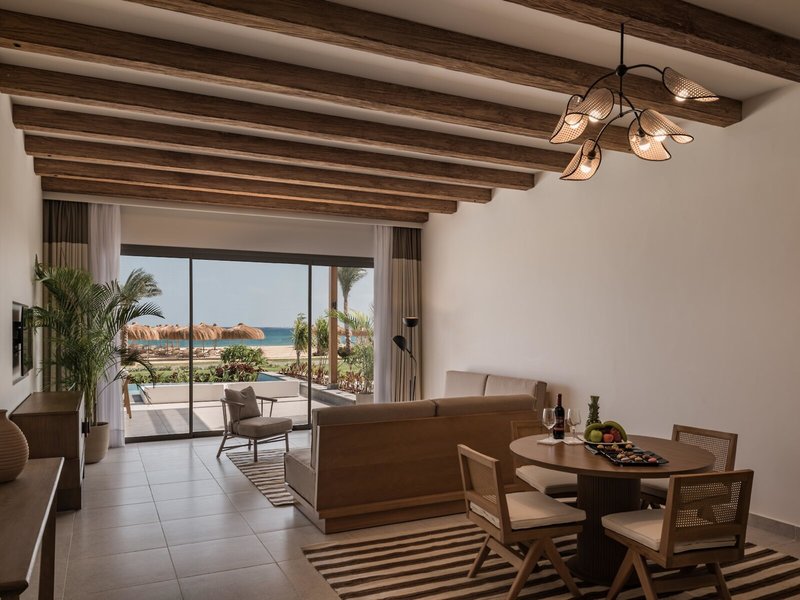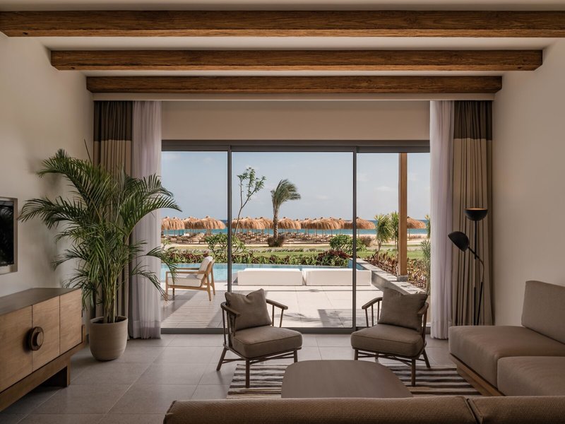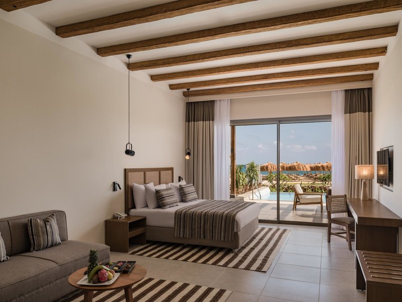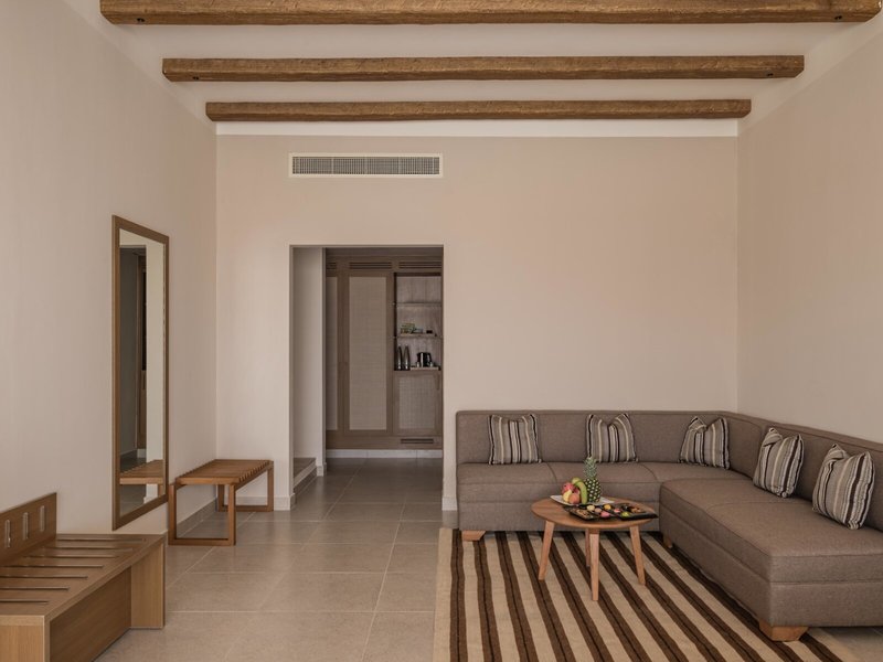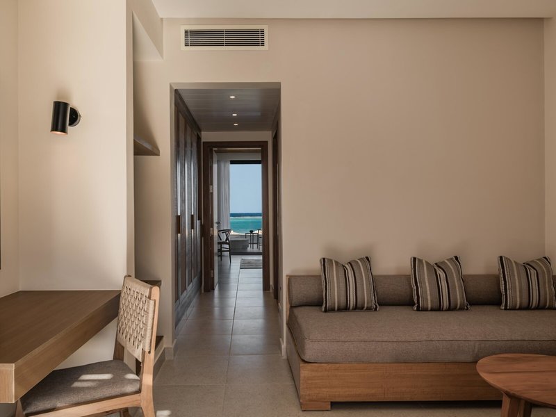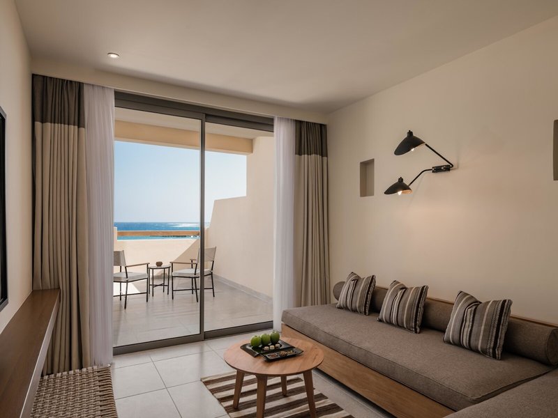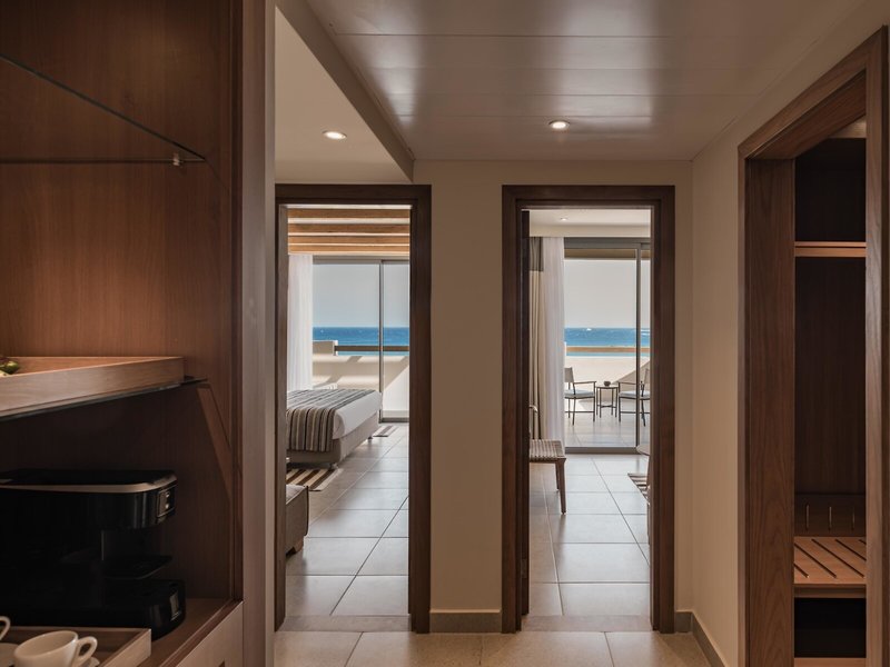 - Royal Suite Sea View (SUM2), Suite, Nichtraucherzimmer, Mindestalter im Zimmer: 12 Jahre, Neubau, Meerseite, Meerblick, Poolblick, ca. 130 m², Gesamtanzahl der Räume in diesem Zimmertyp: 2, Aufteilung wie folgt: bestehend aus 2 Zimmern, optisch getrennt ohne Tür oder durch Vorhang, 1 Doppelbett (180x200cm), Klimaanlage: ohne Gebühr, Januar - Dezember, individuell regelbar, kalt, warm, Fußboden: Fliesenboden, Teppichboden, Safe: ohne Gebühr, Sofa, Kochnische, Espressomaschine, Kaffee-/Teezubereiter, Wasserkocher, Esstisch, Minibar: gegen Gebühr, Softdrinks: gegen Gebühr, Wasser: ohne Gebühr, alkoholische Getränke: gegen Gebühr, Snacks: gegen Gebühr, Minibarauffüllung: täglich, Telefon, Internet: WLAN/WiFi: ohne Gebühr, Fernseher: Flatscreen, im Wohnbereich, im Schlafzimmer, deutsches Programm, Sat-TV, Roomservice: täglich, gegen Gebühr, Dusche, WC, separates WC, Bademantel: ohne Gebühr, Slipper: gegen Gebühr, 2 Bäder, Föhn, Kosmetikspiegel, Terrasse: mit Liegen, mit Sitzgelegenheit, mit Private Pool