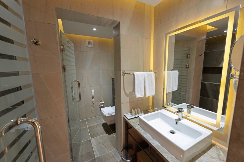 - 36-40 m², manželská posteľ, posedenie, manželské postele (1 manželská posteľ alebo 2 manželské postele), sprchovací kút alebo vaňa, samostatné WC, sušič vlasov, kozmetické zrkadlo, klimatizácia, minibar, trezor, TV, balkón alebo terasa (zariadený)