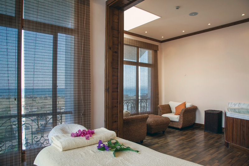 - 36-40 qm, Doppel, Strandlage, Meerblick, Sitzecke, Doppelbetten (1 Kingsize oder 2 Queensize), bodengleiche Dusche, separates WC, Haartrockner, Kosmetikspiegel, Klimaanlage, Minibar, Safe, TV (Sat-TV), WLAN, Kaffee/Tee, Balkon oder Terrasse (möbliert), bei Ankunft im Zimmer Obstkorb, Wein, Wasser