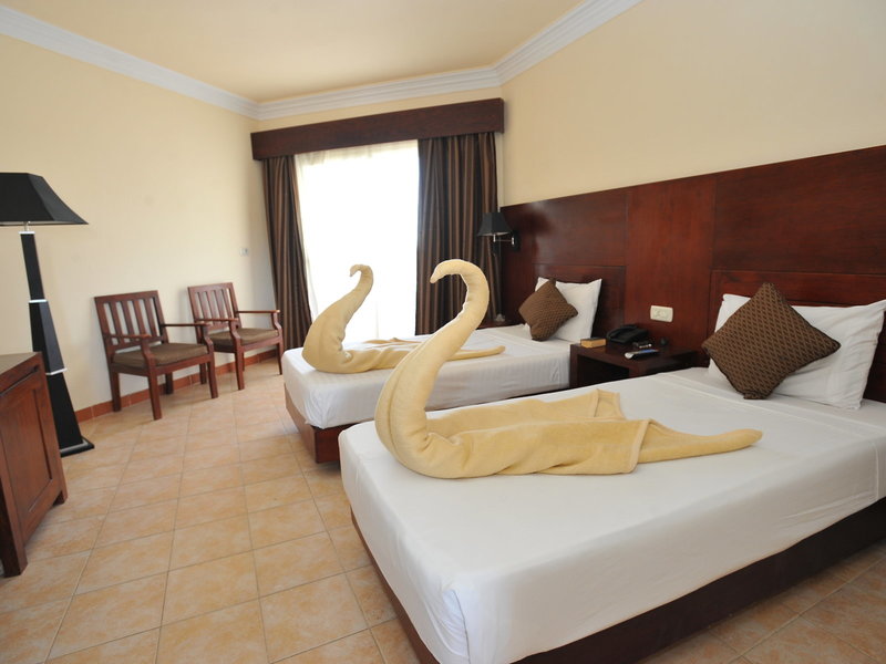 - Deluxe Beach Front room (DZM2), Doppelzimmer, erste Strandreihe, Meerblick, Buchtblick, ca. 35 m², 2 Zustellbetten, Babybett: ohne Gebühr, Reservierung notwendig, Klimaanlage: individuell regelbar, zentral gesteuert, Fußboden: Fliesenboden, Safe: ohne Gebühr, Schreibtisch, Minibar: gegen Gebühr, Softdrinks: gegen Gebühr, Wasser: ohne Gebühr, Minibarauffüllung: mehrmals pro Woche, Telefon, Internet: WLAN/WiFi: gegen Gebühr, Fernseher: im Schlafzimmer, deutsches Programm, Sat-TV, Roomservice: gegen Gebühr, Reinigungsservice, Dusche, WC, Föhn, Terrasse: mit Sitzgelegenheit