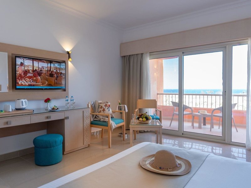 - Premium Room (DZX2), Doppelzimmer, Meerseite, Poolseite, Poolblick, ca. 30 m², Gesamtanzahl der Räume in diesem Zimmertyp: 5, Aufteilung wie folgt: 1 Schlafzimmer, 1 King Size Bett (180x200cm), 2 Zustellbetten (95x195cm), Babybett, Klimaanlage: ohne Gebühr, individuell regelbar, zentral gesteuert, Heizung: individuell regelbar, Fußboden: Fliesenboden, Safe: ohne Gebühr, Minibar: ohne Gebühr, Wasser, Telefon, Fernseher: Sat-TV, Reinigungsservice: täglich, Dusche, WC, Föhn, Balkon oder Terrasse: mit Sitzgelegenheit, Nebenkosten: Endreinigung: ohne Gebühr