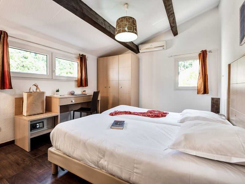 Takto sa ubytujete: Klimatizácia a kúrenie zabezpečujú príjemnú vnútornú klímu v izbách. Balkón je štandardom vo väčšine izieb. Izby majú manželskú posteľ a rozkladaciu pohovku. Prístelky je možné vyžiadať. K dispozícii je aj trezor a písací stôl. K dispozícii je plne vybavená kuchynka s chladničkou, sporákom, mikrovlnnou rúrou a príslušenstvom na prípravu čaju/kávy. Pre väčšie pohodlie hostí je k dispozícii súprava na žehlenie. K dispozícii je aj telefón, satelitná TV a WiFi (zdarma). V kúpeľni so sprchovacím kútom a vaňou nájdete sušič vlasov a telefón. Je možné rezervovať si bezbariérové izby. Dom ponúka rodinné, nefajčiarske a fajčiarske izby.