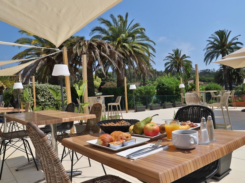 Poloha a okolie Hotel sa nachádza v priestrannej záhrade asi 300 m od piesočnatej pláže lemovanej palmami. Čarovné lagúnové mesto Port Grimaud môžete objavovať na prechádzkach alebo na bicykli. Je to asi 10 km do Saint-Tropez, malebného a pulzujúceho pobrežného mesta.