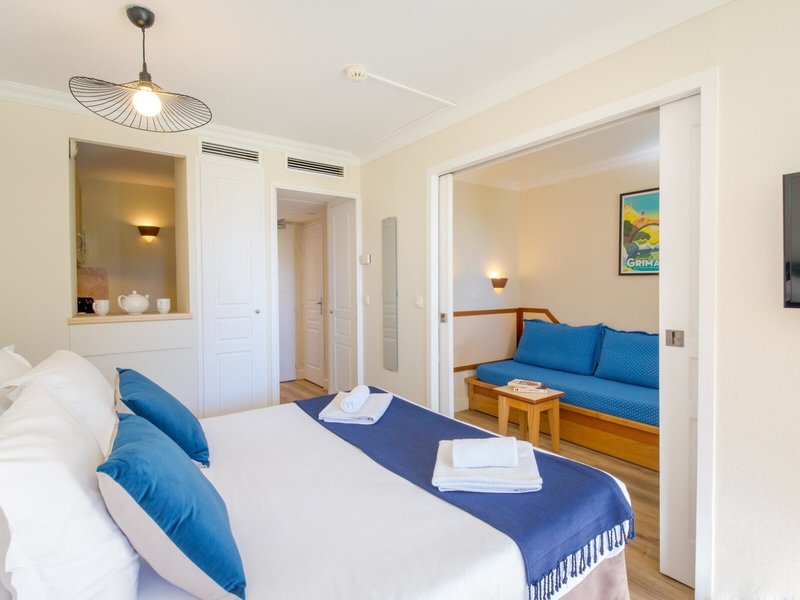 - Sowell Family PORT GRIMAUD JS (JSX1), nefajčiarska izba, v prístavbe, cca 30 m², naposledy čiastočne zrekonštruovaná v roku 2023, celkový počet izieb v tomto type izby: 2, rozloženie: pozostáva z 2 izieb, vizuálne oddelených posuvnými dverami, 1 spálňa, 2 samostatné postele (90x190cm), 2 rozkladacie pohovky (80x190cm), detská postieľka: bezplatne, nie je potrebná žiadosť, rezervácia nutná, klimatizácia: bezplatne, kúrenie, podlaha: PVC, trezor: bezplatne, pohovka, internet: WLAN/WiFi: bezplatne, televízor: plochá obrazovka, v obývacej časti, vaňa, samostatné WC, balkón alebo terasa: s posedením