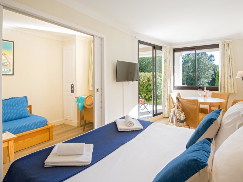 - Sowell Family PORT GRIMAUD JS (JSX1), Nichtraucherzimmer, im Nebengebäude, ca. 30 m², letzte Teilrenovierung 2023, Gesamtanzahl der Räume in diesem Zimmertyp: 2, Aufteilung wie folgt: bestehend aus 2 Zimmern, optisch getrennt durch Schiebetür, 1 Schlafzimmer, 2 Einzelbetten (90x190cm), 2 Schlafsofas (80x190cm), Babybett: ohne Gebühr, Anfrage nicht notwendig, Reservierung notwendig, Klimaanlage: ohne Gebühr, Heizung, Fußboden: PVC, Safe: ohne Gebühr, Sofa, Internet: WLAN/WiFi: ohne Gebühr, Fernseher: Flatscreen, im Wohnbereich, Badewanne, separates WC, Balkon oder Terrasse: mit Sitzgelegenheit