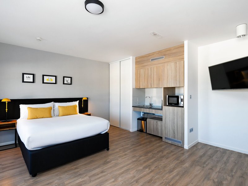 Das bietet Ihre Unterkunft: Das freundliche Personal an der Rezeption ist gerne bei allen Fragen behilflich. Serviceleistungen wie eine Gepäckaufbewahrung und ein Safe tragen zu einem komfortablen Aufenthalt bei. Im Apartmenthotel steht WLAN zur Verfügung. Hilfestellung bei der Buchung von Ausflügen wird am Tourdesk geboten. Die Unterbringung verfügt über eine Reihe von behindertengerechten Annehmlichkeiten. Das Hotel verfügt über rollstuhlgerechte Einrichtungen und einen Aufzug. Ein Supermarkt und andere Geschäfte können zum Einkaufen und Bummeln genutzt werden. Ein Garten bietet zusätzlichen Raum für Entspannung und Erholung im Freien. Zur weiteren Einrichtung des Apartmenthotels zählt ein Spielzimmer. Bei einer Anreise mit dem Auto können die Gäste dieses in einer Garage oder auf dem Parkplatz (ohne Gebühr) parken. Unter den weiteren Leistungen finden sich medizinische Betreuung, ein Wäscheservice, eine Münzwäscherei und ein eigener Shuttlebus. Bei Geschäftlichem hilft das Business-Center gerne weiter und bietet ein Faxgerät an.
