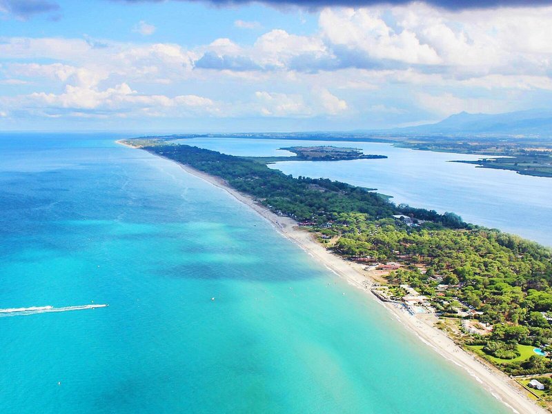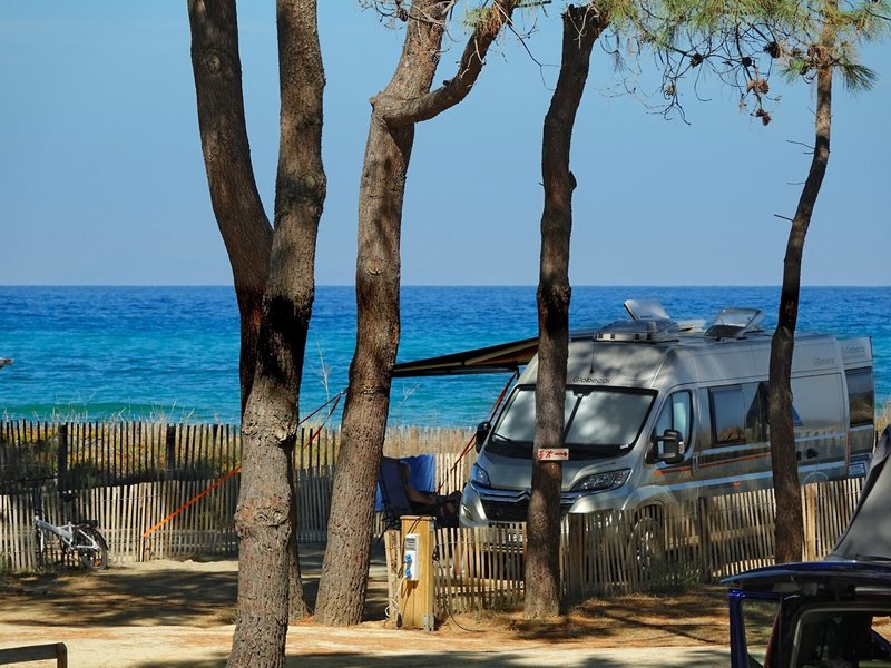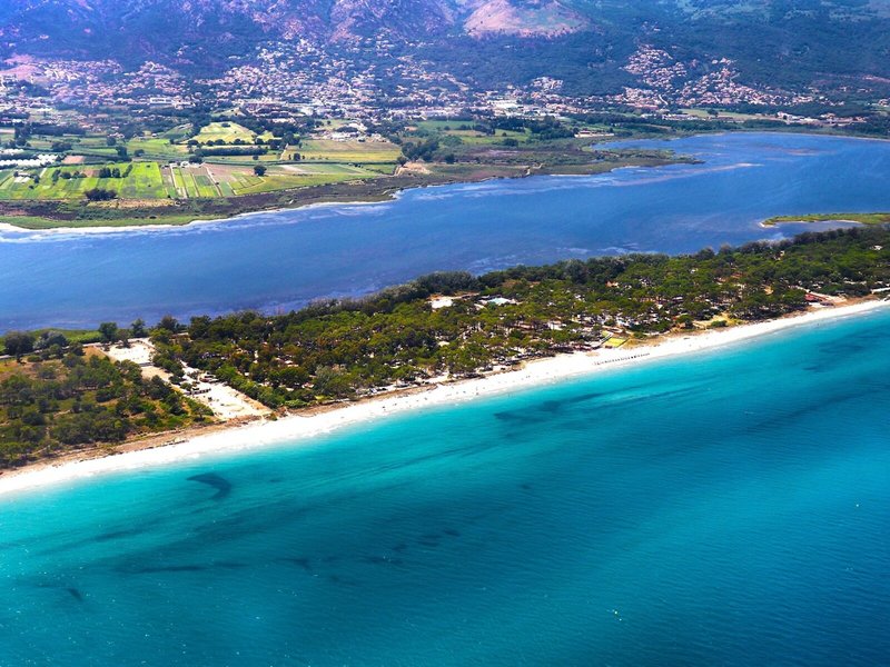 Poloha a okolie: Kemp sa nachádza priamo na piesočnatej pláži s priamym prístupom k moru. Centrum mesta Bastia je vzdialené približne 9 km. V rozľahlom areáli nájdete reštauráciu, supermarket, bazénový komplex a detské ihriská, všetko v pešej vzdialenosti.