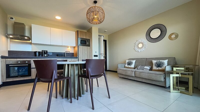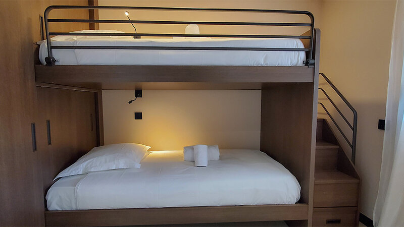 Appt. Superieur Antica Meerblick (ca. 45 m²): 3-Zimmer-Wohnung für bis zu vier Personen (davon max. 2 Erwachsene), Schlafzimmer mit französischem Doppelbett, Schlafzimmer mit Stockbett, Bad mit Dusche, Föhn, Wohnbereich mit Kitchenette (mit Geschirrspüler und Mikrowelle, Klimaanlage, Safe, TV, möblierte Terrasse mit Meerblick.