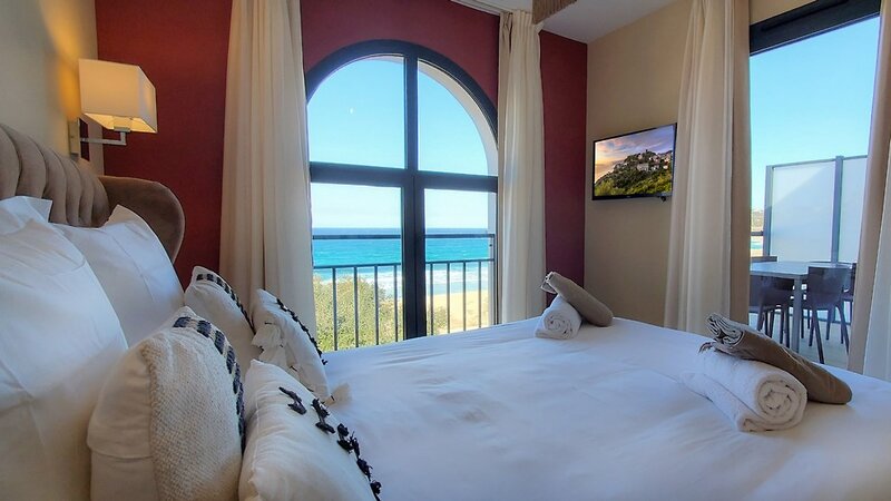 Appt. Master Antica Meerblick (ca. 70 m²): 4-Zimmer-Wohnung für bis zu acht Personen (davon max. 6 Erwachsene), zwei Schlafzimmer mit französischem Doppelbett, Schlafzimmer mit Stockbett, Wohnbereich mit Schlafsofa, Kitchenette (mit Geschirrspüler und Mikrowelle), zwei Badezimmer mit Dusche, Föhn, Klimaanlage, Safe, TV, möblierte Terrasse mit Meerblick.