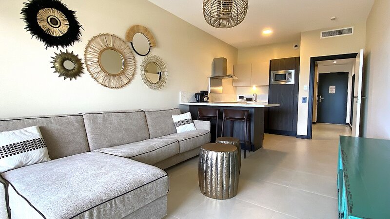 Sie buchen die Unterkunft ohne Verpflegung. Auf Wunsch ist Frühstück in Buffetform vor Ort zubuchbar. Ein À-la-carte Restaurant und ein hauseigenes Strandrestaurant stehen für Sie gegen Gebühr bereit (von Juni bis September). Möglichkeit zur Selbstverpflegung - Frühstückskörbe mit frischen und lokalen Produkten in Bio-Qualität auf Anfrage und gegen Gebühr. Ein besonderes Highlight ist die hauseigene Skybar.