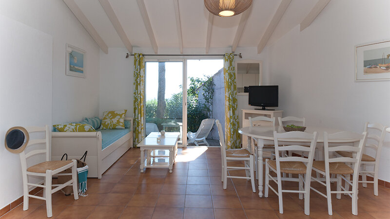 Minivilla Superior (ca. 40 m²): 2-Zimmer-Wohnung für bis zu 4 Personen, 1 Schlafzimmer mit zwei Einzelbetten (es kann ein Doppelbett daraus gemacht werden), Wohn- und Schlafraum mit Schlafsofa, Bad mit Dusche, separates WC, Kitchenette (mit Geschirrspüler und Mikrowelle), TV, Safe, Klimaanlage, W-Lan, möblierte Terrasse oder Balkon mit Barbecue-Grill. Die Minivillen befinden sich entweder in Strandnähe (ca. 750 m vom Pool / ca. 150 m vom Strand entfernt) oder haben Meerblick (ca. 150 m vom Pool / ca. 900 m vom Strand entfernt). Sie liegen im Bereich Marina.