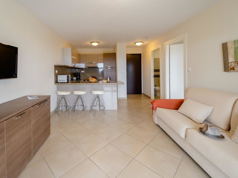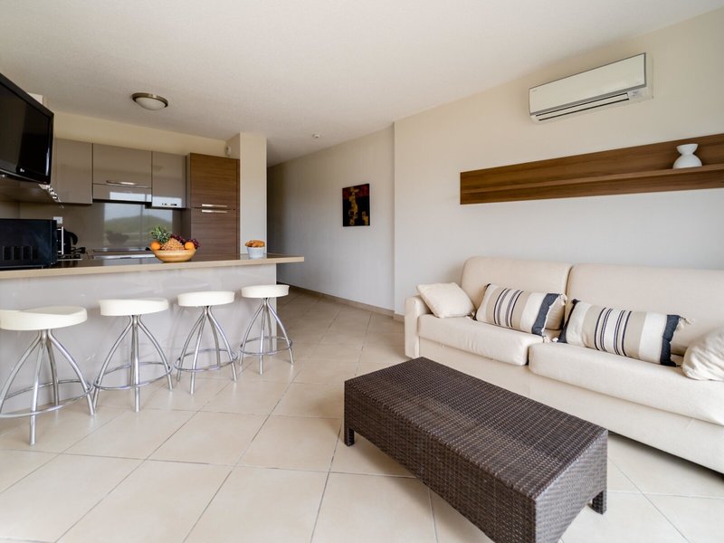 - Apartment Poolside Type F2 (APX2), Appartement, Nichtraucherzimmer, Poolseite, Südseite, Gartenblick, Stadtblick, ca. 40 m², letzte Komplettrenovierung 2012, Gesamtanzahl der Räume in diesem Zimmertyp: 2, Aufteilung wie folgt: Wohnzimmer, 1 Schlafzimmer, 1 Queen Size Bett (160x200cm), 1 Schlafsofa (140x190cm), Babybett: gegen Gebühr, Anfrage notwendig, Reservierung nicht notwendig, Klimaanlage: ohne Gebühr, saisonabhängig; wetterabhängig, individuell regelbar, kalt, warm, Heizung: wetterabhängig, individuell regelbar, Fußboden: Fliesenboden, Safe: ohne Gebühr, Sofa, Küche, Kühlschrank: ohne Gebühr, Gas/E-Herd, Backofen, Mikrowelle, Geschirrspüler, Kaffeemaschine, Internet: WLAN/WiFi, Fernseher: Flatscreen, im Wohnbereich, Dusche, WC, Föhn, Balkon: mit Sitzgelegenheit, Nebenkosten: Kaution : 500 EUR