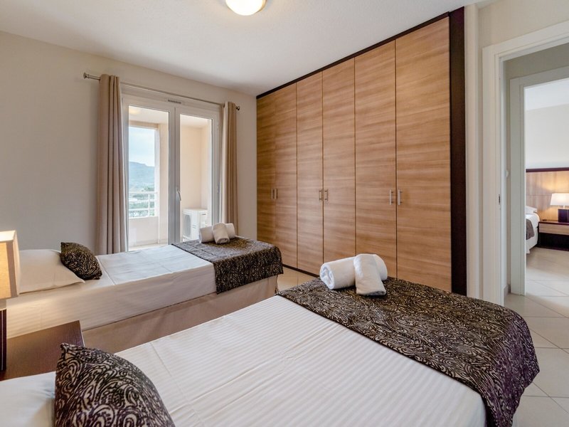 - Apartment Poolside Type F3 (APX3), Appartement, Nichtraucherzimmer, Gartenseite, Gartenblick, Stadtblick, ca. 70 m², letzte Komplettrenovierung 2012, Gesamtanzahl der Räume in diesem Zimmertyp: 3, Aufteilung wie folgt: bestehend aus 2 Doppelzimmern ohne Verbindungstür, Wohnzimmer, 2 Schlafzimmer, 2 Einzelbetten (90x200cm), 1 Queen Size Bett (160x200cm), 1 Schlafsofa (140x190cm), Babybett: gegen Gebühr, Anfrage notwendig, Reservierung nicht notwendig, Klimaanlage: ohne Gebühr, saisonabhängig; wetterabhängig, individuell regelbar, Heizung: wetterabhängig, Fußboden: Fliesenboden, Safe, Sofa, Küche, Kühlschrank, Gas/E-Herd, Backofen, Mikrowelle, Geschirrspüler, Kaffeemaschine, Internet: WLAN/WiFi, Fernseher: Flatscreen, im Wohnbereich, Dusche, Balkon: mit Sitzgelegenheit, Nebenkosten: Kaution : 500 EUR