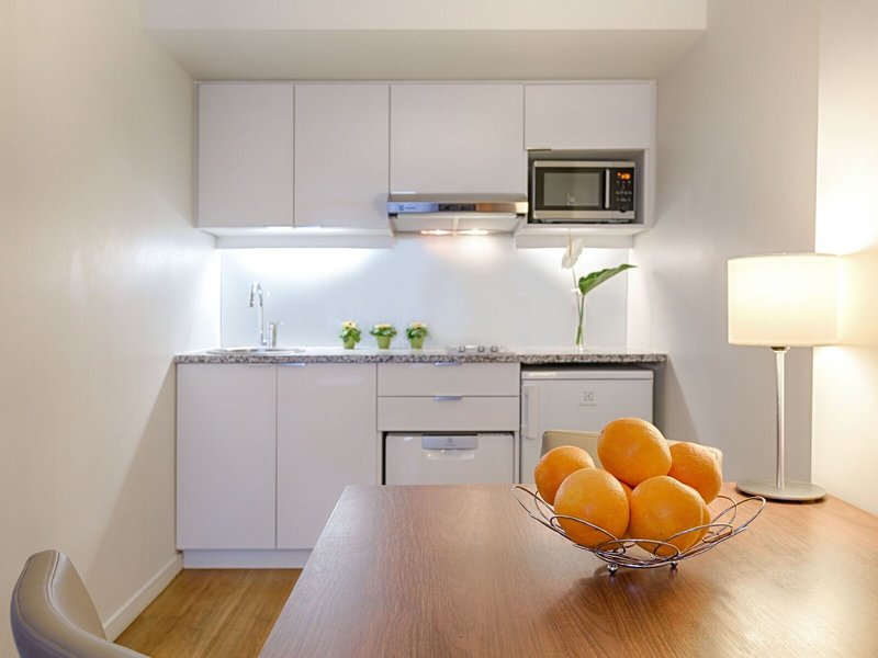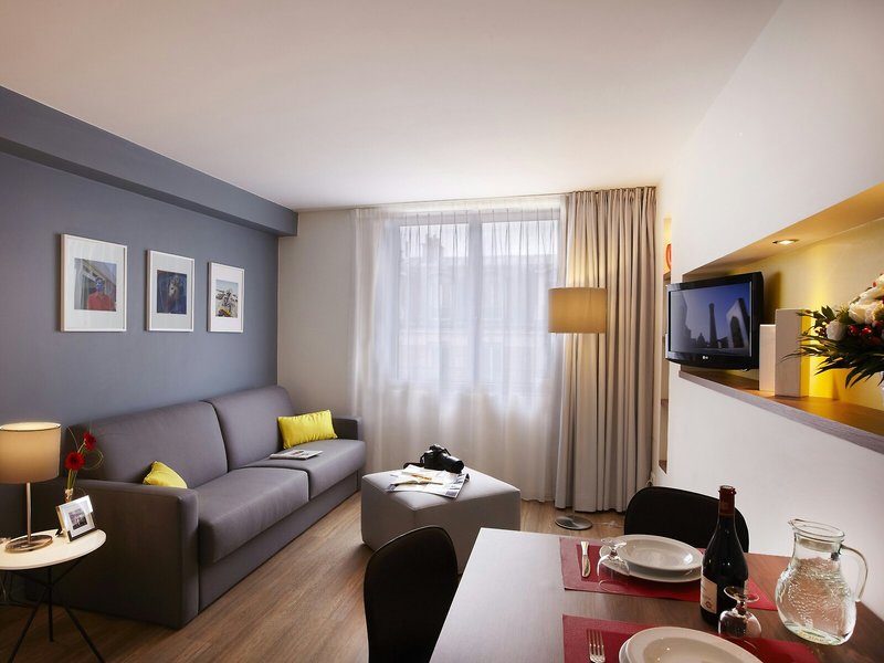 Das bietet Ihre Unterkunft: Die 39 Apartments und die 130 Studios verteilen sich auf 8 Etagen und sind über einen Aufzug erreichbar. Englisch- und französischsprachiges Personal an der Rezeption im Empfangsbereich steht zur Seite beim Ein- und Auschecken. Die Einrichtung des Apartmenthotels umfasst eine Garderobe, eine Gepäckaufbewahrung, einen Safe und einen Getränkeautomaten. Im Hotel steht WLAN zur Verfügung. Die Unterbringung bietet eine Reihe behindertengerechter Annehmlichkeiten. Rollstuhlgerechte Einrichtungen sind vorhanden. Es ist eine Reihe von Geschäften vorhanden, die zum Schlendern und Stöbern einladen. Zu den weiteren Einrichtungen des Apartmenthotels zählen ein Zeitungskiosk und ein TV-Raum. Wer mit dem Fahrzeug anreist, kann es auf dem Parkplatz des Hotels abstellen. Unter den weiteren Leistungen finden sich medizinische Betreuung, ein Weckdienst, ein Wäscheservice, eine Münzwäscherei und ein eigener Shuttlebus. Bei Geschäftlichem hilft das Business-Center gerne weiter und bietet einen Projektor an.