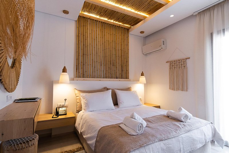 Direkt am Sandstrand von Skala gelegen, nur wenige Gehminuten vom malerischen Hafen entfernt, begrüßt Sie dieses charmante Boutique-Hotel. Es besteht aus drei separaten Gebäuden und umfasst insgesamt 27 Wohneinheiten, ein Restaurant und einen Wellnessbereich.