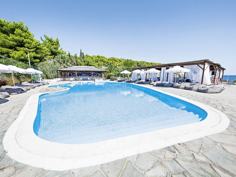 Poloha: Na susednom ostrove Alonissos, cca 3 km od hlavného mesta Patitiri. Je postavený na malebnom polostrove obklopenom borovicovými lesmi a dvoma tichými zátokami a ponúka priamy prístup ku krásnym plážam a krištáľovo čistej vode. Ideálne pre pokoj, zážitky z prírody a relax. Cesta prebieha cez Skiathos trajektom.