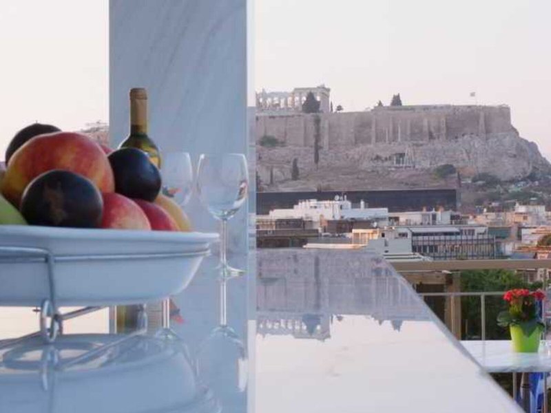 Lage & Umgebung Das Hotel, großartig am Fuße der Akropolis gelegen, ist nur wenige Gehminuten vom Akropolismuseum entfernt. Der Tempel des Zeus, auch bekannt als Olympieion, befindet sich in der Amalias-Straße, etwa 500 m vom Hotel entfernt. Zahlreiche der Attraktionen der Stadt sind nach einem Spaziergang erreicht, einschließlich des alten Stadtviertels Plaka. Boutiquen, Bars und Restaurants sind nach einem Spaziergang von etwa 10 min erreicht. Die Metrostation ist rund 150 m entfernt und bietet einen guten Zugang zu den wichtigsten Teilen der Stadt. Zum internationalen Flughafen Athen sind es vom Hotel rund 20 km.