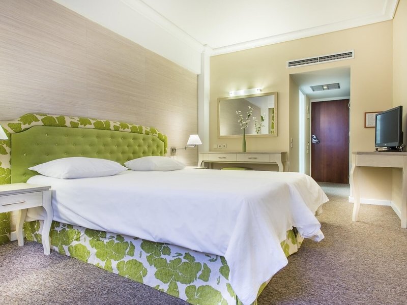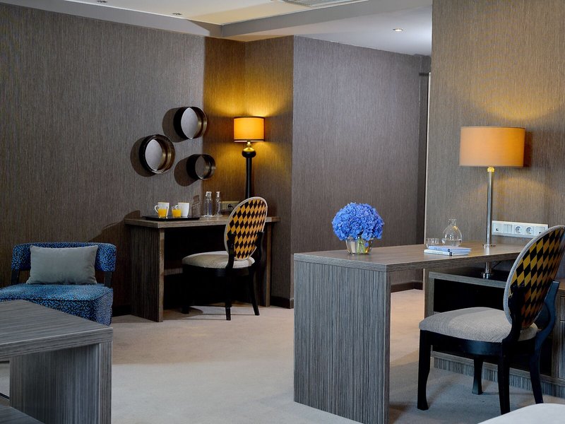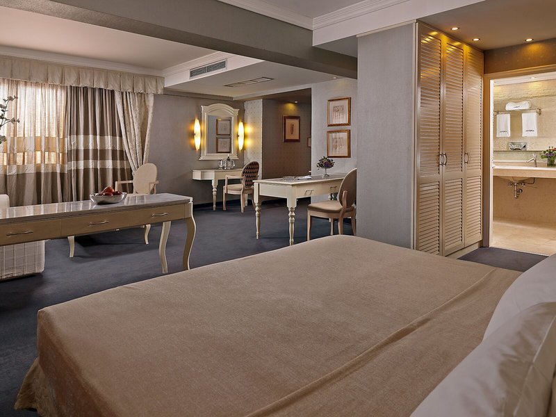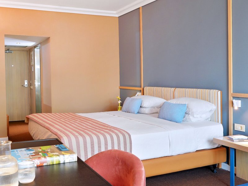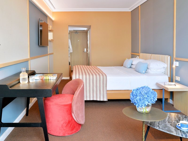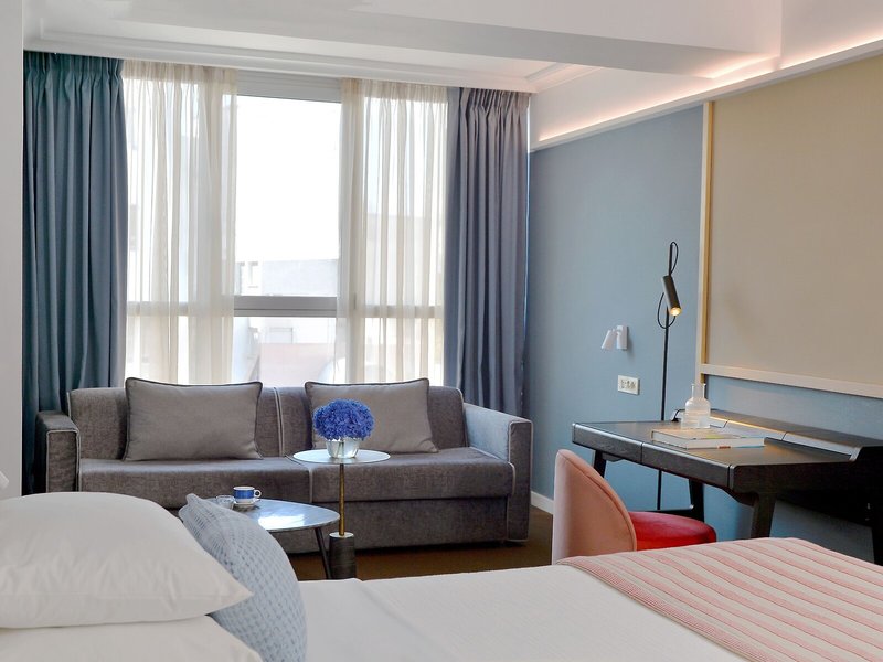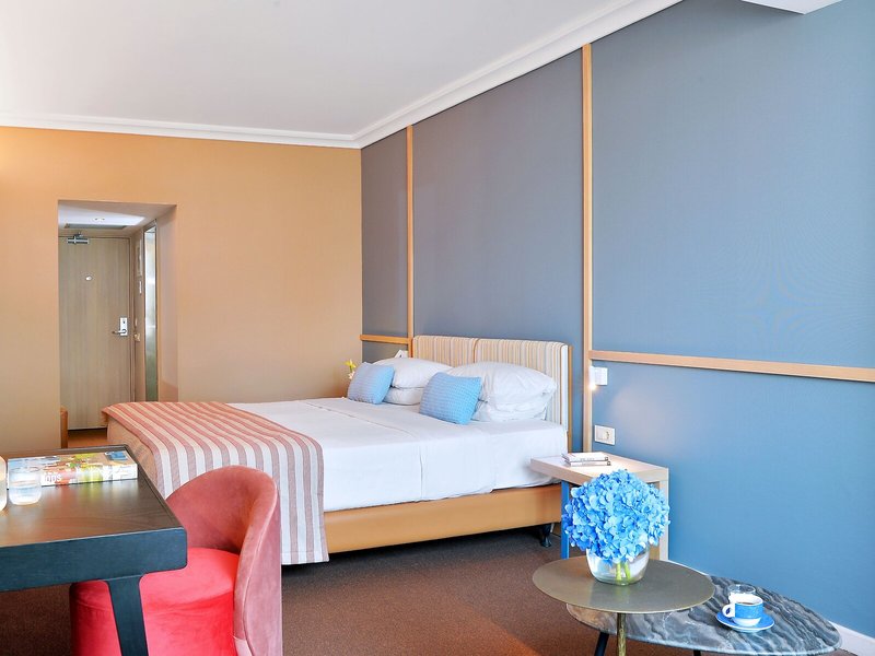 Vaše ubytovanie: Izby sú vybavené klimatizáciou a kúrením. Hostia si môžu vychutnať výhľad na mesto zo svojho balkóna alebo terasy. Izby majú manželskú posteľ a rozkladaciu pohovku. K dispozícii sú samostatné spálne. Prístelky je možné vyžiadať. K dispozícii je aj trezor, minibar a písací stôl. K dispozícii je aj mini chladnička a príslušenstvo na prípravu kávy/čaju. Nechýba ani žehliaca súprava a lis na nohavice. Pre optimálne pohodlie je k dispozícii telefón s priamou voľbou, TV so satelitným/káblovým príjmom, rádio a WiFi (zdarma). K vybaveniu izieb patria papuče. V kúpeľni so sprchovacím kútom a vaňou máte k dispozícii sušič vlasov a telefón. Ako zvláštnosť si hostia môžu vychutnať kozmetické produkty a výber uterákov v kúpeľniach. Hotel ponúka rodinné a nefajčiarske izby.