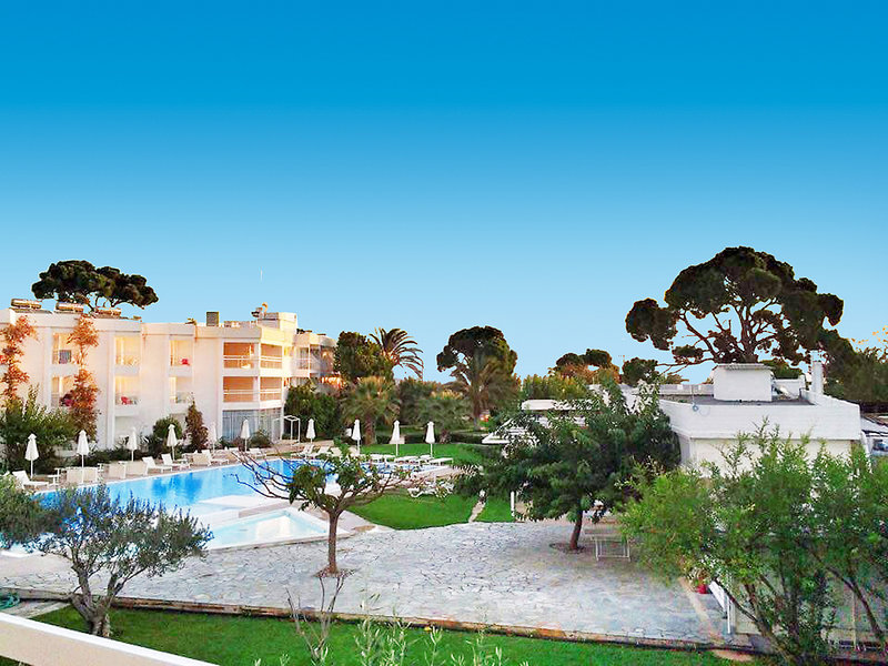 Ausstattung: Gemütliches Mittelklassehotel, bestehend aus 3 Gebäuden, umgeben von einer Gartenanlage. Im Außenbereich Meerwasserswimmingpool mit Sonnenterrassen, Jacuzzi und Kinderbecken. Liegen, Sonnenschirme und Badetücher am Pool und am Strand (gegen Kaution). Im Haupthaus Empfangshalle mit Rezeption (24 Stunden) und Geschäfte. 3 Bars, Restaurant. WLAN in der gesamten Hotelanlage. Landeskategorie: 3 Sterne, 160 Zimmer.