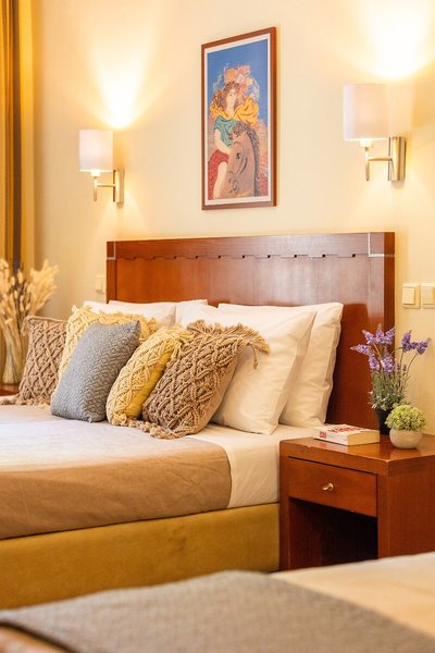 Ubytovanie: Izby sú vybavené klimatizáciou a kúrením. Vo väčšine izieb je k dispozícii balkón alebo terasa. Izby majú manželskú posteľ, manželskú posteľ alebo manželskú posteľ. Prístelky je možné vyžiadať. K dispozícii je aj trezor, minibar a písací stôl. K dispozícii je tiež chladnička, minichladnička a príslušenstvo na prípravu čaju/kávy. Pre väčšie pohodlie hostí je k dispozícii súprava na žehlenie. Okrem toho je k dispozícii telefón s priamou voľbou, TV so satelitným/káblovým príjmom, rádio, stereo systém a WiFi (bez poplatku). Kúpeľňa je vybavená sprchovacím kútom, vaňou, sušičom vlasov a telefónom. Kozmetické výrobky poskytujú extra pohodlie v kúpeľniach. Je možné si zarezervovať bezbariérové izby. Dom ponúka rodinné a nefajčiarske izby.