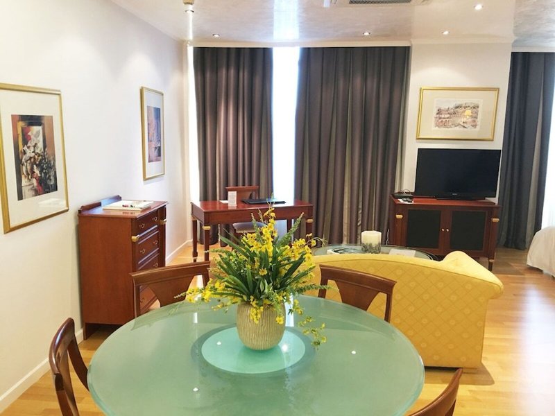 So wohnen Sie: Für angenehmes Raumklima in den Zimmern sorgen eine Klimaanlage und eine Heizung. Balkon oder Terrasse gehören zur Standardausstattung der meisten Zimmer. In den mit Teppichböden ausgestatteten Zimmern steht ein Doppelbett, ein Queensize-Bett, ein Kingsize-Bett oder ein Sofabett bereit. Zustellbetten können angefordert werden. Außerdem sind ein Safe, eine Minibar und ein Schreibtisch verfügbar. Ein Minikühlschrank zählt ebenfalls zur Standardeinrichtung. Hinzu kommen eine Hosenpresse und ein Wäschetrockner. Besten Urlaubskomfort bieten ein Telefon mit Direktwahl, ein TV-Gerät mit Satelliten-/Kabelempfang, ein Radio, ein CD-Player, ein DVD-Player, ein Wecker und WiFi (ohne Gebühr). Die Gäste finden Hausschuhe in ihrer Unterkunft. Im Badezimmer, ausgestattet mit einer Dusche und einer Badewanne, sind ein Haartrockner und Bademäntel vorhanden. Als Besonderheit genießen die Gäste in den Badezimmern Kosmetikartikel und eine Auswahl an Handtüchern. Buchbar sind rollstuhlgerechte Zimmer. Für Eltern mit Kindern stehen Familienzimmer zur Verfügung.
