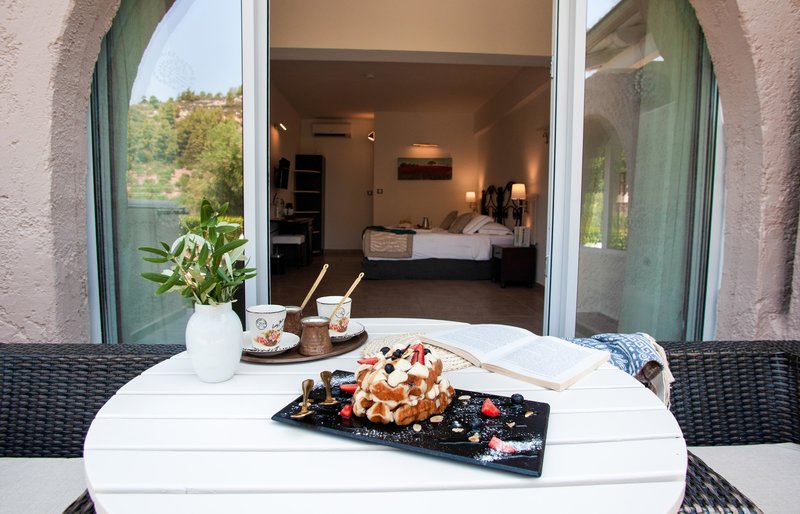 Umgeben von Olivenbäumen lässt die Entspannung unter der Sonne Griechenlands nicht lange auf sich warten! Schalten Sie ab und genießen Sie den wunderbaren Service.