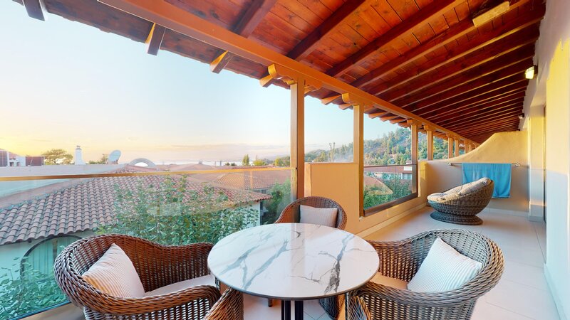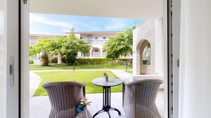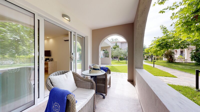 Mezonet (MA, cca 55 m²), samostatná spálňa, klimatizácia, minibar, kávovar/čajník, Wi-Fi, TV, telefón, trezor. Sprcha, WC, župany, papuče a fén. Terasa. Výhľad na bazén. Max. 4 dospelí + 1 dieťa