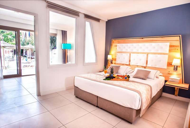 Apartmán (SU, cca 38 m²), samostatná spálňa, klimatizácia, minibar, kávovar/čajník, Wi-Fi, TV, telefón, trezor. Kúpeľňa/sprcha, WC, župany, papuče a fén. Balkón alebo terasa. Max. 2 dospelí + 2 deti
