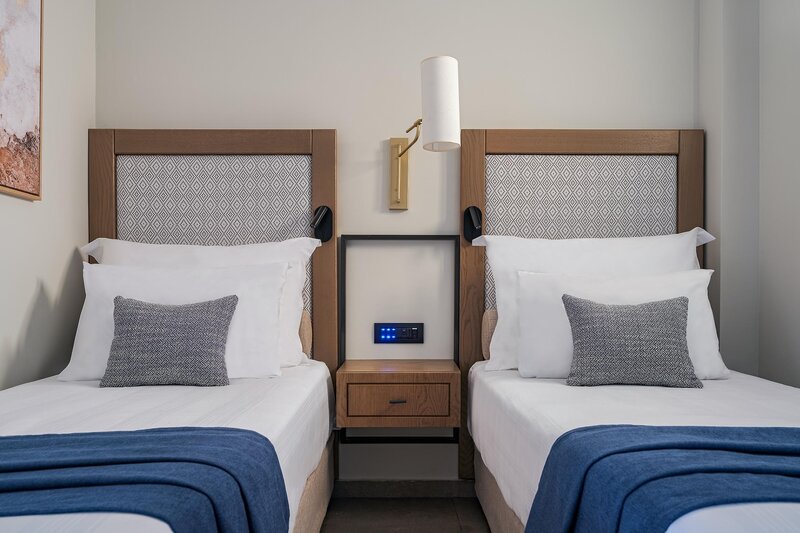 Dvojlôžková izba Deluxe (DDM, cca 25 m²), klimatizácia, chladnička, kávovar/čajník, Wi-Fi, TV, telefón, trezor. Kúpeľňa/sprcha, WC, fén. Balkón/terasa. Výhľad na more. Max. 2 dospelí.