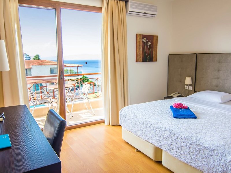 So wohnen Sie: Für angenehmes Raumklima in den Zimmern sorgen eine Klimaanlage und eine Heizung. Die Gäste können den Meerblick von Balkon oder Terrasse genießen. Die Zimmer verfügen über ein Kingsizebett und ein Sofabett. Zustellbetten können angefordert werden. Außerdem sind ein Safe, eine Minibar und ein Schreibtisch verfügbar. Auch ein Kühlschrank und eine Tee-/Kaffeemaschine sind vorhanden. Besten Urlaubskomfort bieten ein Telefon, Sat-TV und WiFi (ohne Gebühr). Im Badezimmer, ausgestattet mit einer Dusche und einer Badewanne, gibt es einen Haartrockner. Als Besonderheit genießen die Gäste in den Badezimmern Kosmetikartikel und eine Auswahl an Handtüchern. Buchbar sind rollstuhlgerechte Zimmer.