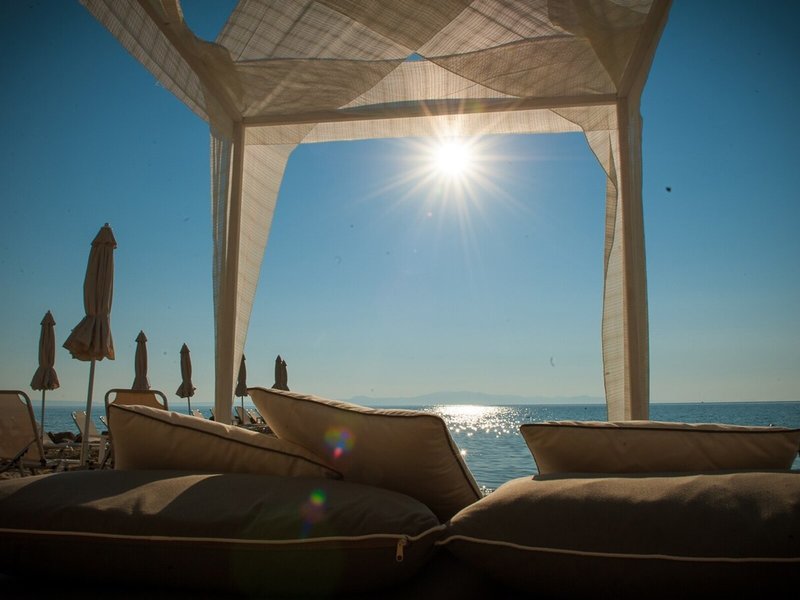 Lage & Umgebung Dieses Hotel befindet sich im bezaubernden Dorf Kassandra in Afytos am Strand Moudounou. Das Zentrum von Afytos liegt nur ca. 100 m weit weg und bietet den Gästen eine Reihe von Restaurants, Bars und Geschäften. Das traditionelle Dorf Afytos blickt auf eine lange Geschichte von 28 Jahrhunderten zurück. Er erhebt sich wie eine Insel auf einem Felsen über die Wogen der Ägäis. Hier können die Gäste das warme und kristallklare Wasser des Mittelmeeres an einer hübschen kleinen Sandbucht genießen. Zum Busbahnhof Afytos sind es ca. 400 m, während sich das Tourismuszentrum von Kallithea mit seinen Ausgehmöglichkeiten in ca. 5 km Entfernung befindet. Nach Nea Moudania sind es um die 20 km. Petralona liegt etwa 60 km weit weg, zum Berg Athos sind es um die 100 km und der Flughafen Thessaloniki lässt sich nach ca. 80 km erreichen.