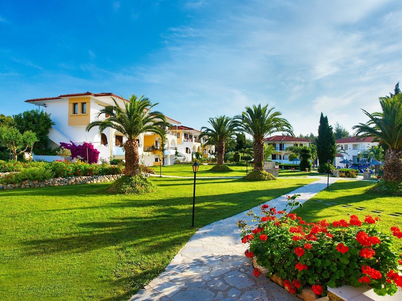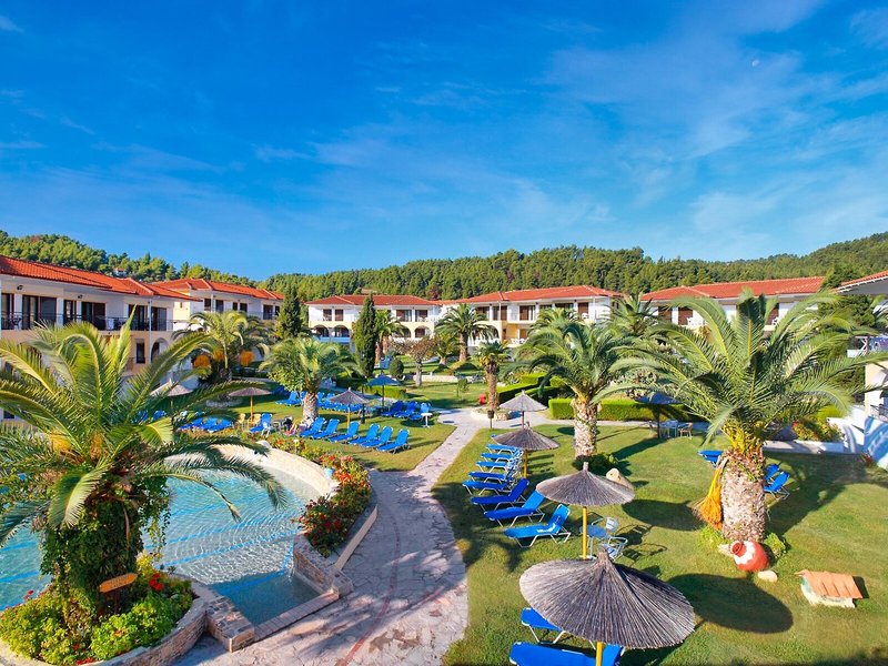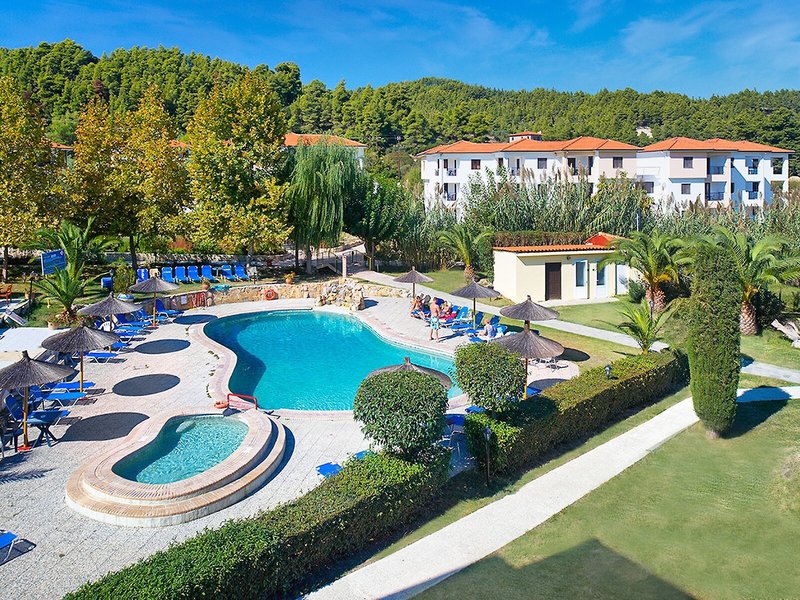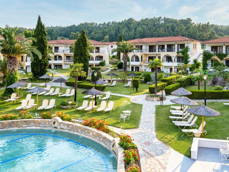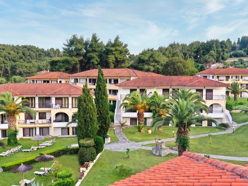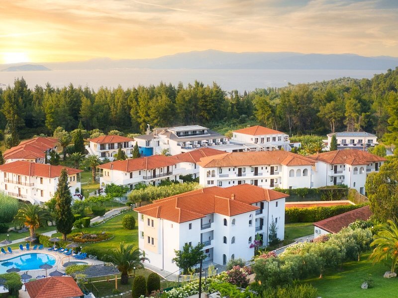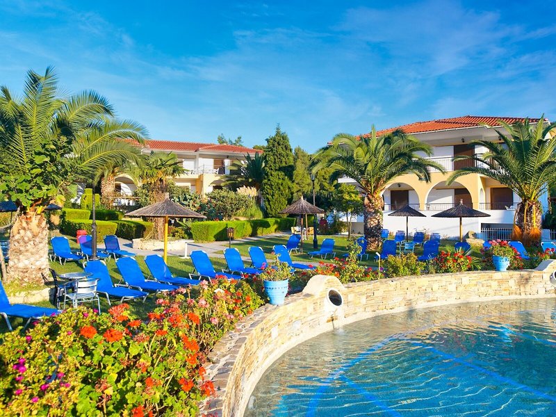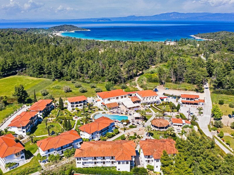Poloha a okolie Tento malý kúsok raja priamo pri modrom oceáne sa nachádza na okraji polostrova Kassandra, Chalkidiki a vyžaruje z neho prírodné krásy. Je to len 500 m od tradičnej dediny Paliouri, zatiaľ čo turistickejšiu dedinu Pefkohori nájdete asi 9 km odtiaľto. Hotel je obklopený borovicovými lesmi a na bielu piesočnatú pláž sa dostanete po krátkej prechádzke lesom vzdialenej asi 400 m. Krajina sa vyznačuje bohatou flórou a voňavými borovicami. Samotný apartmánový hotel je zasadený do idylického prostredia s krásnou záhradou plnou ruží, popínavých rastlín, muškátov a rozmarínu. Medzinárodné letisko Thessaloniki je vzdialené len 110 km.
