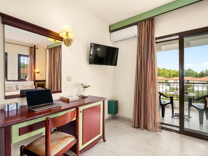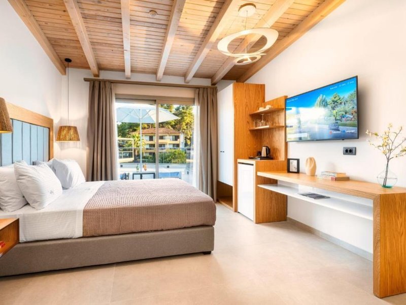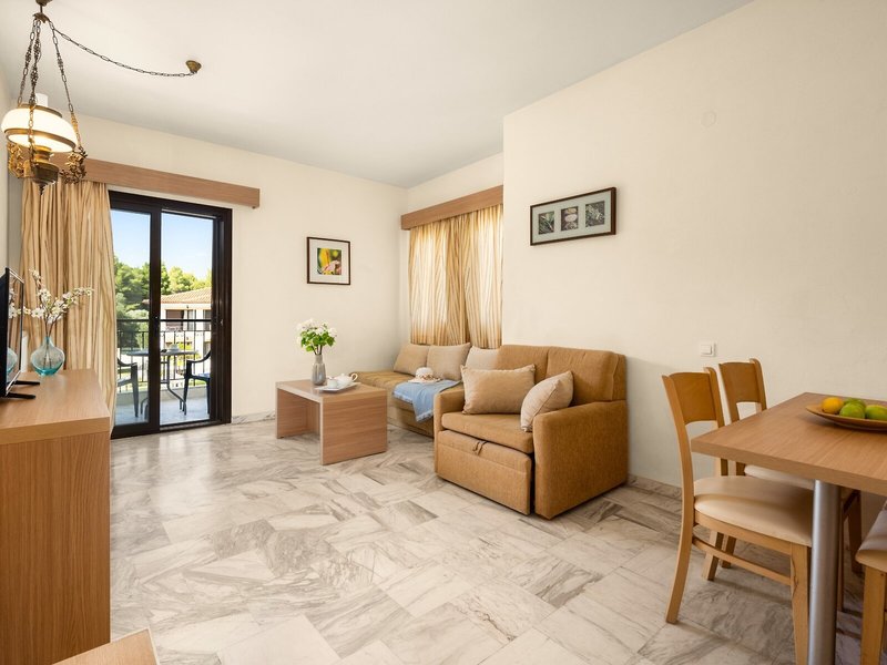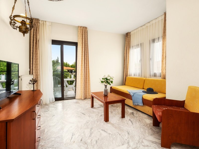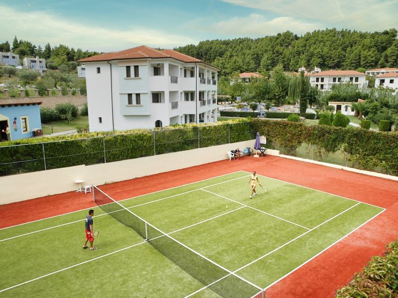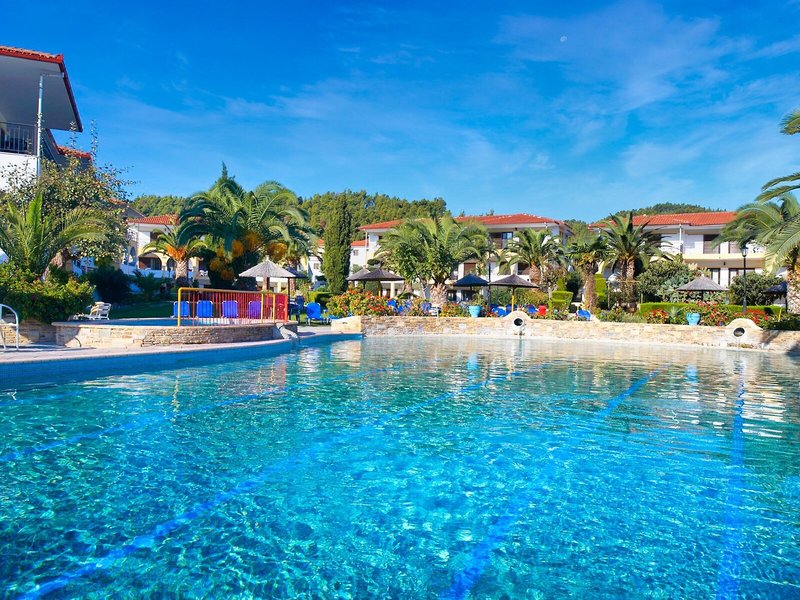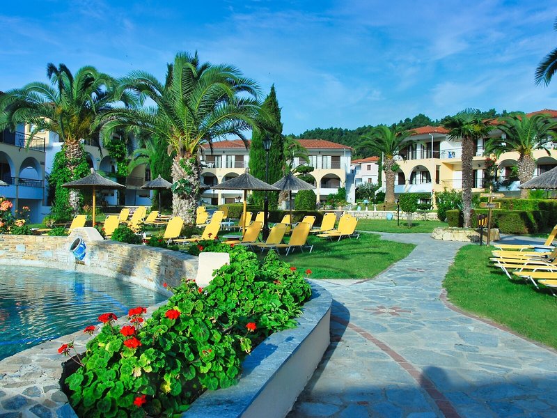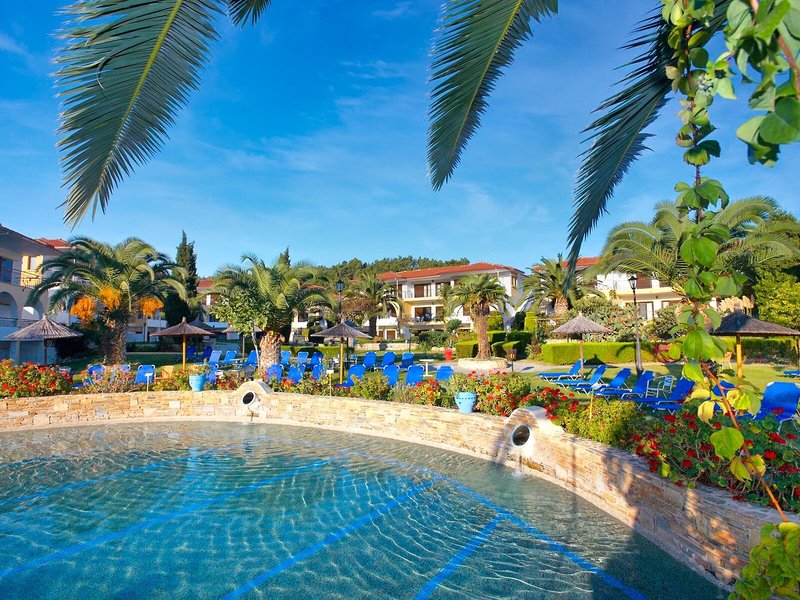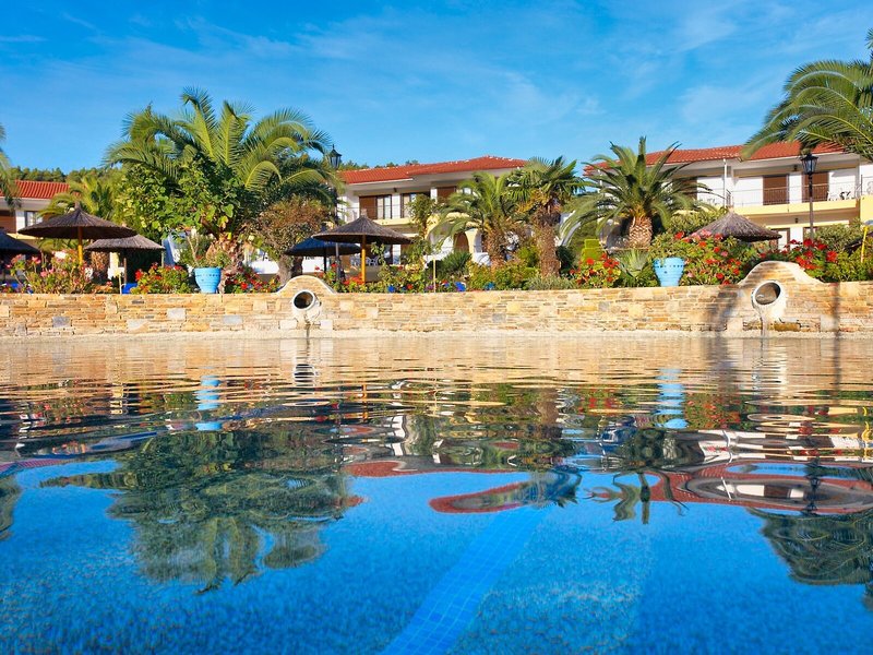 Poloha a okolie Tento malý kúsok raja priamo pri modrom oceáne sa nachádza na okraji polostrova Kassandra, Chalkidiki a vyžaruje z neho prírodné krásy. Je to len 500 m od tradičnej dediny Paliouri, zatiaľ čo turistickejšiu dedinu Pefkohori nájdete asi 9 km odtiaľto. Hotel je obklopený borovicovými lesmi a na bielu piesočnatú pláž sa dostanete po krátkej prechádzke lesom vzdialenej asi 400 m. Krajina sa vyznačuje bohatou flórou a voňavými borovicami. Samotný apartmánový hotel je zasadený do idylického prostredia s krásnou záhradou plnou ruží, popínavých rastlín, muškátov a rozmarínu. Medzinárodné letisko Thessaloniki je vzdialené len 110 km.