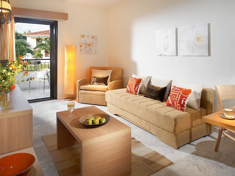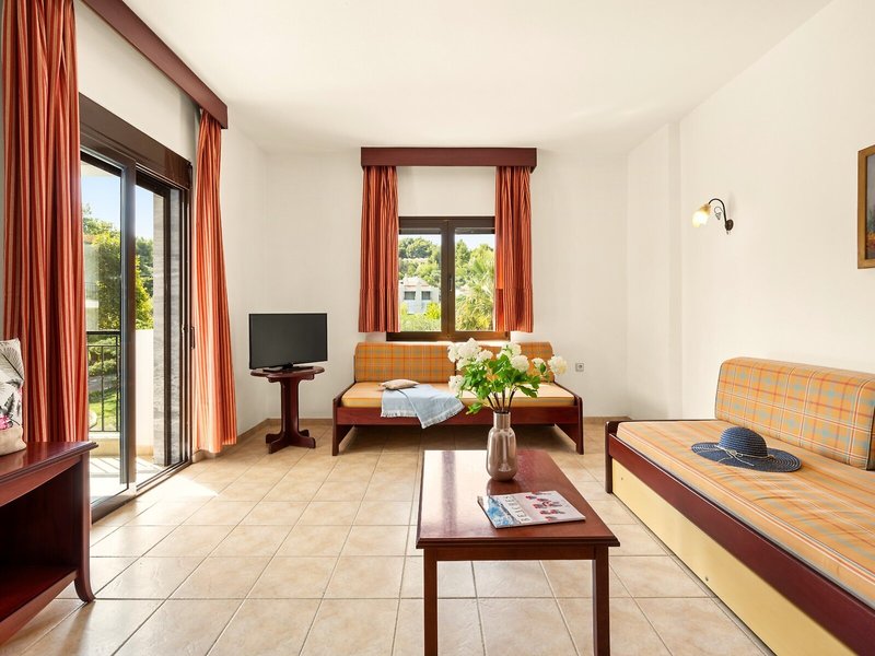Ubytovanie: Klimatizácia a kúrenie zabezpečujú príjemnú vnútornú klímu v izbách. Hostia si môžu vychutnať výhľad do záhrady zo svojho balkóna alebo terasy. Izby majú posteľ king a rozkladaciu pohovku. K dispozícii sú samostatné spálne. Prístelky je možné vyžiadať. K dispozícii je aj trezor a písací stôl. Kuchynka je vybavená chladničkou, minichladničkou a príslušenstvom na prípravu čaju/kávy. Pre väčšie pohodlie hostí je k dispozícii súprava na žehlenie. Okrem toho je k dispozícii telefón s priamou voľbou, TV so satelitným/káblovým príjmom a WiFi (bez poplatku). Kúpeľňa je vybavená sprchovacím kútom a vaňou, ako aj sušičom vlasov a kozmetickým zrkadlom. Kozmetické výrobky poskytujú extra pohodlie v kúpeľniach. Je možné si zarezervovať bezbariérové izby. Ubytovanie ponúka rodinné a nefajčiarske izby.