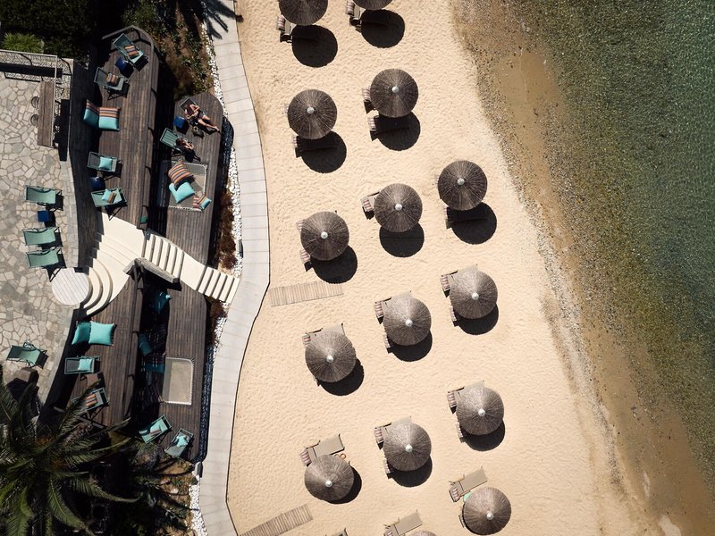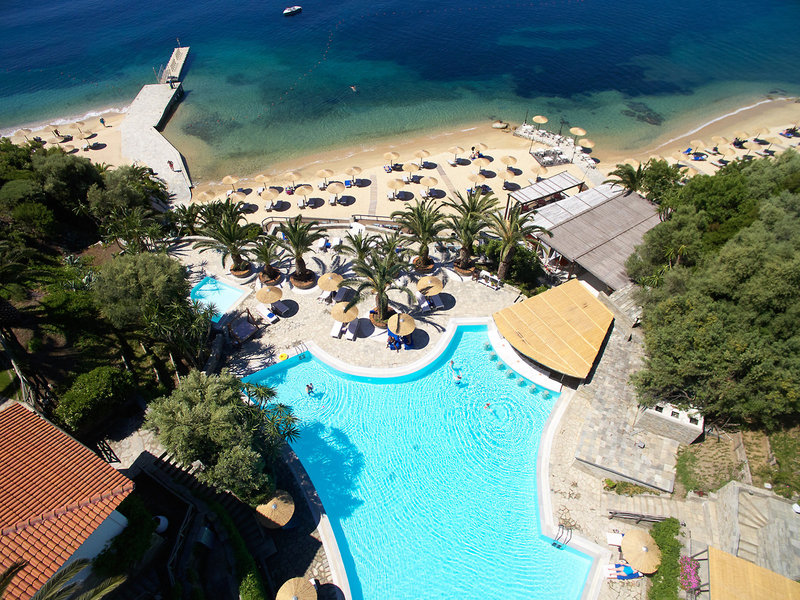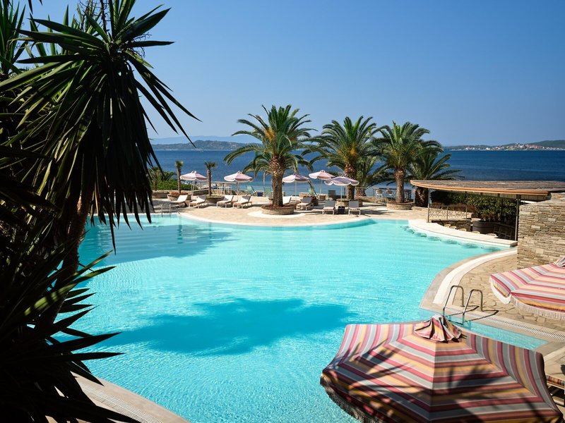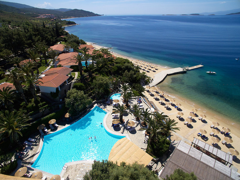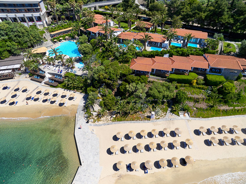 Poloha a okolie Súkromne vlastnený a majiteľmi spravovaný hotel sa nachádza na treťom polostrove Chalkidiki v blízkosti rybárskej dediny Ouranoupolis a Svätej hory Athos, ktorá je so svojimi slávnymi skalnými kláštormi zapísaná na zozname svetového dedičstva UNESCO. Eagles Palace Hotel & Spa sa nachádza priamo na vlastnej pláži s jemným pieskom a azúrovými vodami Egejského mora. Hotel je obklopený rozsiahlymi subtropickými záhradami s rozlohou približne 3 hektáre, v ktorých sa nachádzajú aj bungalovy. Do Ouranoupolis cca 4,5 km hotelovou kyvadlovou dopravou. Člen skupiny Small Luxury Hotels of the World.