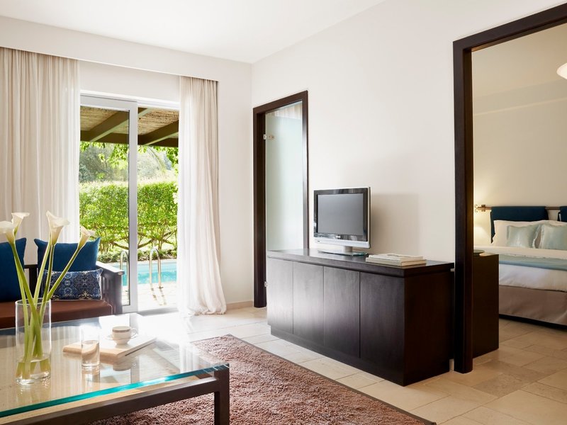 - Grand Suite Private Pool Sea Front (SUM2), Suite, Nichtraucherzimmer, Mindestalter im Zimmer: 0 Jahre, im Hauptgebäude, Meerblick, Gartenblick, Blick auf Sea, ca. 150 - 150 m², letzte Komplettrenovierung 2010, letzte Teilrenovierung 2016, Gesamtanzahl der Räume in diesem Zimmertyp: 2, Aufteilung wie folgt: bestehend aus 2 Doppelzimmern mit Verbindungstür, 2 Einzelbetten (90x200cm), 1 Doppelbett (160x200cm), Klimaanlage: zentral gesteuert, Fußboden: Fliesenboden, Nespressomaschine, Minibar, Fernseher: Flatscreen, deutsches Programm, Deutsche Welle, Sat-TV, Reinigungsservice: täglich 09:00 Uhr - 19:00 Uhr, ohne Gebühr, Badewanne oder Dusche, 2 Bäder, Terrasse: mit Liegestühlen, mit Private Pool