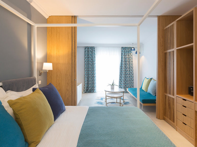 - Deluxe Junior Suite Sea Front (JSM5), Juniorsuite, im Hauptgebäude, Meerblick, ca. 40 m², letzte Komplettrenovierung 2024, Gesamtanzahl der Räume in diesem Zimmertyp: 1, Aufteilung wie folgt: kombiniertes Wohn-/Schlafzimmer, 1 Schlafzimmer, 1 Doppelbett, 1 Schlafsofa, Babybett: ohne Gebühr, Anfrage notwendig, Moskitonetz, Klimaanlage: ohne Gebühr, individuell regelbar, kalt, warm, Heizung: individuell regelbar, Fußboden: Fliesenboden, Safe: ohne Gebühr, Sitzecke, Sofa, Schreibtisch, Nespressomaschine, Kaffee-/Teezubereiter, Minibar: gegen Gebühr, Softdrinks: gegen Gebühr, Wasser: gegen Gebühr, alkoholische Getränke: gegen Gebühr, Snacks: gegen Gebühr, Minibarauffüllung: täglich, Telefon, Internet: WLAN/WiFi: ohne Gebühr, Fernseher: Flatscreen, deutsches Programm, Sat-TV, Roomservice: gegen Gebühr, Reinigungsservice: ohne Gebühr, Dusche, WC, Bademantel: ohne Gebühr, Slipper: ohne Gebühr, Föhn, Kosmetikspiegel, Balkon: mit Sitzgelegenheit