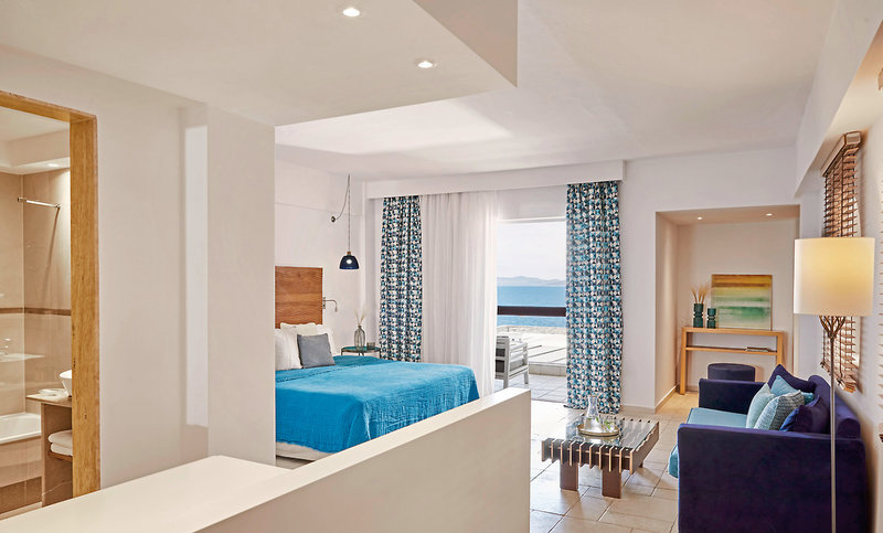 - 51-60 qm, Suite, Hauptgebäude, Meerblick, 2 separate Schlafzimmer, separater Wohnraum, 1 Bad, Dusche oder Badewanne, Bademantel, Badeslipper, Haartrockner, Klimaanlage, Minibar, Safe, TV (Sat-TV, Flachbildschirm), Musikanlage, WLAN, Gefrierfach, Espressomaschine