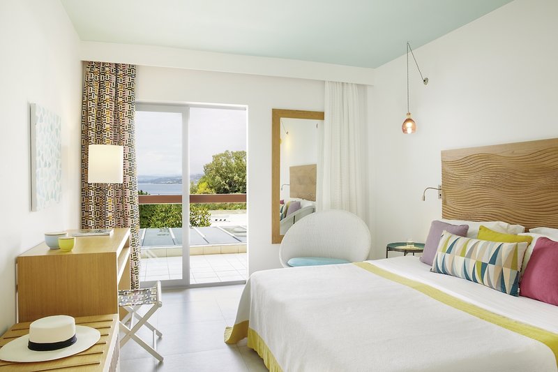 - 21-25 m², dvojlôžková, luxusná, hlavná budova, výhľad na more, zrekonštruovaná, kombinovaná obývacia izba/spálňa, 1 kúpeľňa, sprchovací kút alebo vaňa, sušič vlasov, klimatizácia, minibar, trezor, TV (satelitná TV, plochá obrazovka), WiFi, kávovar na espresso, balkón (zariadený)