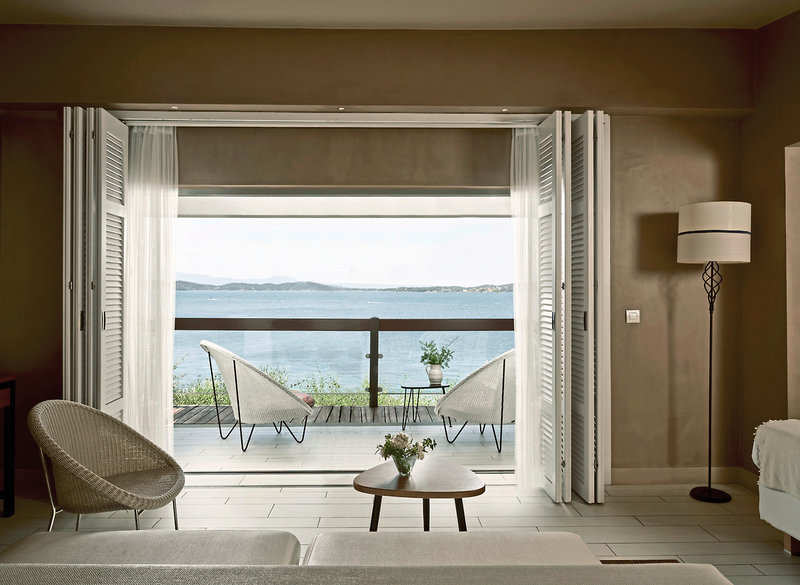 - 36-40 qm, Juniorsuite, Deluxe, Hauptgebäude, Meerblick, renoviert, kombinierter Wohn-/Schlafraum, 1 Bad, Dusche oder Badewanne, Bademantel, Badeslipper, Haartrockner, Klimaanlage, Minibar, Safe, TV (Sat-TV, Flachbildschirm), Musikanlage, WLAN, Gefrierfach, Espressomaschine, Balkon oder Terrasse (möbliert)