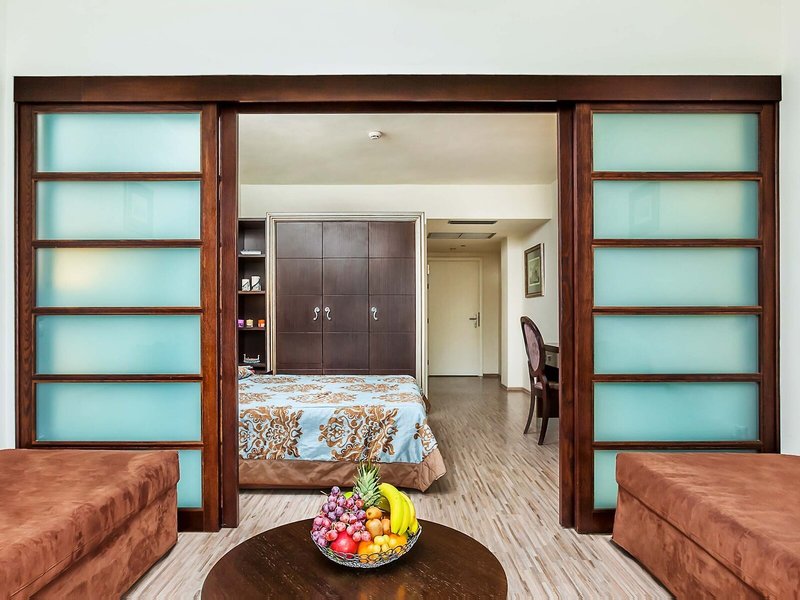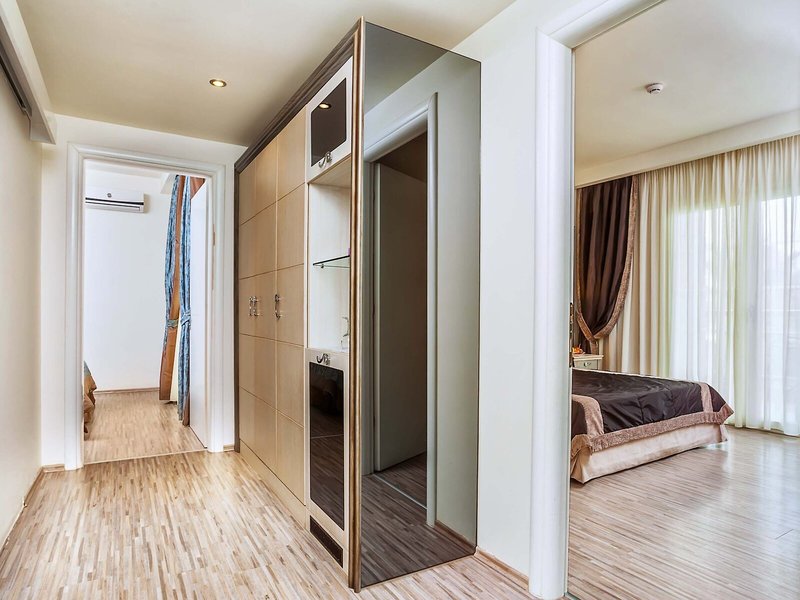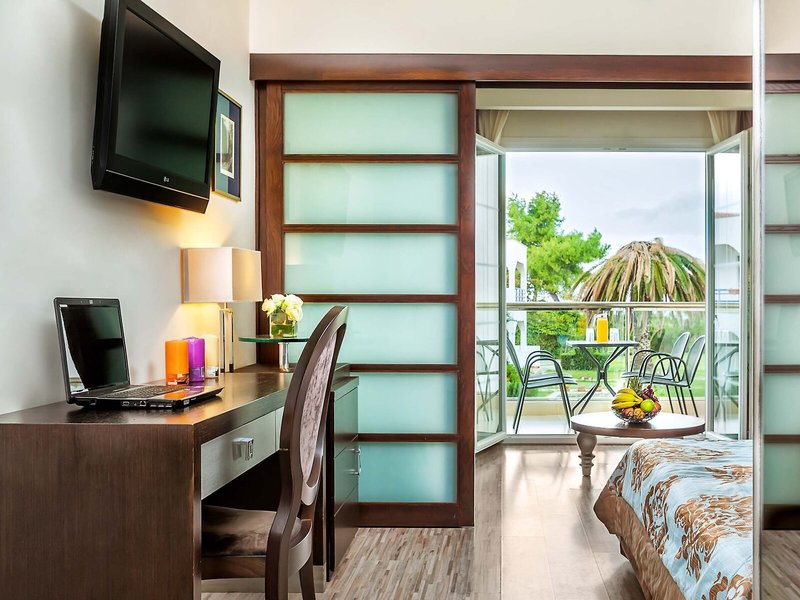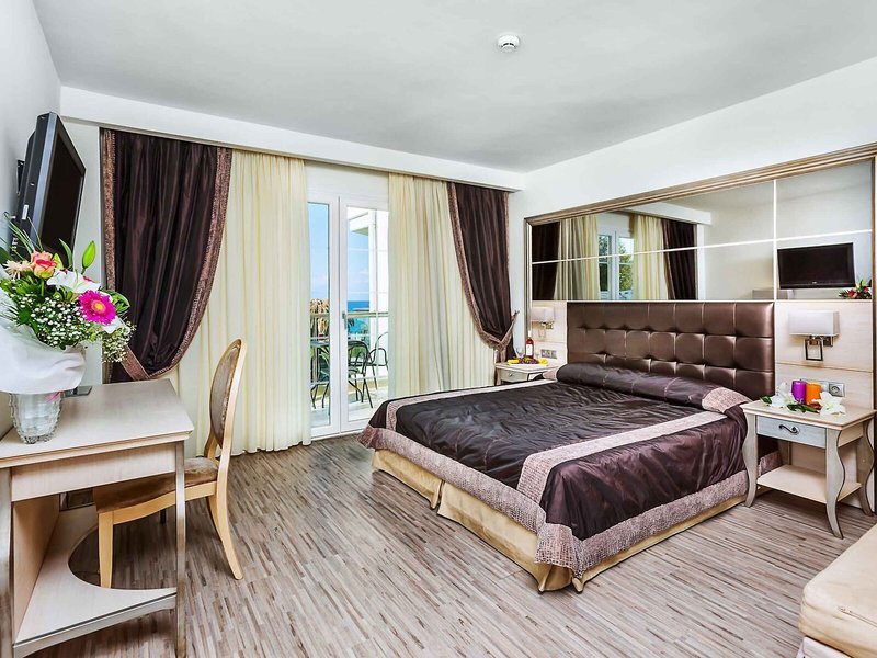 Vaše ubytovanie: Klimatizácia a kúrenie zabezpečujú príjemnú teplotu v izbe. Hostia si môžu vychutnať výhľad na more z balkóna alebo terasy. Izby sú vybavené manželskou posteľou a rozkladacou pohovkou. K dispozícii sú samostatné spálne. Prístelky je možné vyžiadať. K dispozícii je aj trezor a písací stôl. Kuchynka je vybavená mini chladničkou a mikrovlnnou rúrou. Telefón, TV a bezplatné Wi-Fi pripojenie na internet ponúkajú optimálny komfort počas dovolenky. Hostia môžu využiť večernú službu rozostlania postele. V izbách sú k dispozícii papuče. Kúpeľňa so sprchovacím kútom a vaňou obsahuje sušič vlasov a župany. Pre väčšie pohodlie sú k dispozícii toaletné potreby. K dispozícii sú aj bezbariérové izby s bezbariérovou kúpeľňou. Rekreačná dedinka ponúka rodinné a nefajčiarske izby.