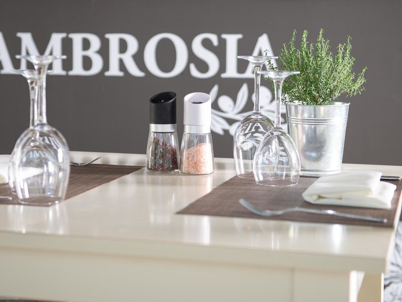 • Reštaurácia AMBROSIA: Kuchyňa: grécka, medzinárodná, talianska, typická pre danú krajinu, stredomorská, regionálna, grilované jedlá, detské menu, sezónne jedlá, vegetariánske jedlá, vegánske jedlá, à la carte, obedovať, dve jedlá večer, tri čas jedla večer, pri bazéne, vysoká stolička