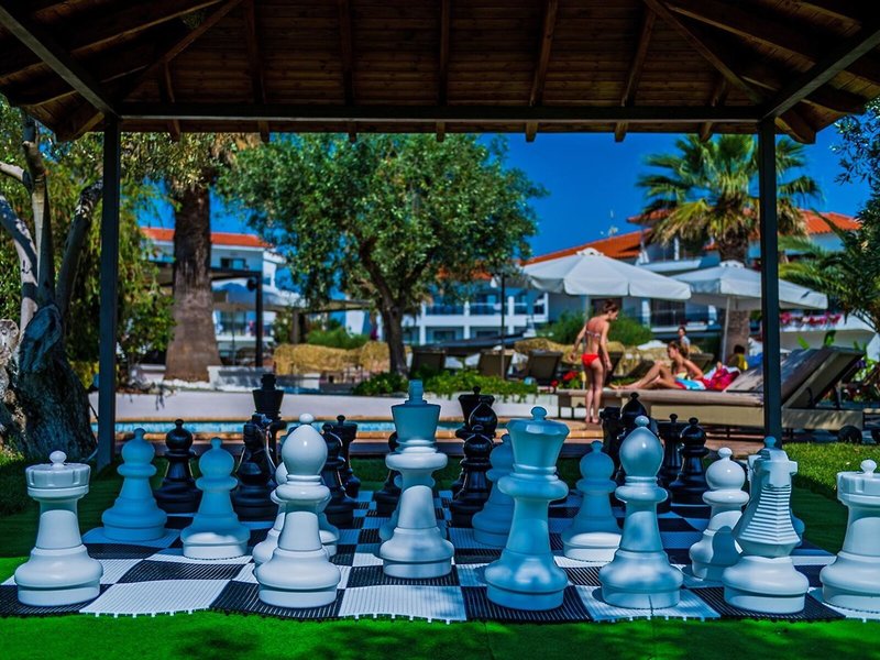 Poloha a okolie: Hotel Flegra Palace sa nachádza v pôvabnej dedinke Pefkohori na polostrove Kassandra. Pláž je vzdialená približne 150 metrov a centrum dedinky asi 500 metrov. Autobusová zastávka sa nachádza priamo pred hotelom. Letisko v Solúne je vzdialené približne 100 kilometrov. Reštaurácie, taverny a obchody sú vzdialené 5-10 minút chôdze.
